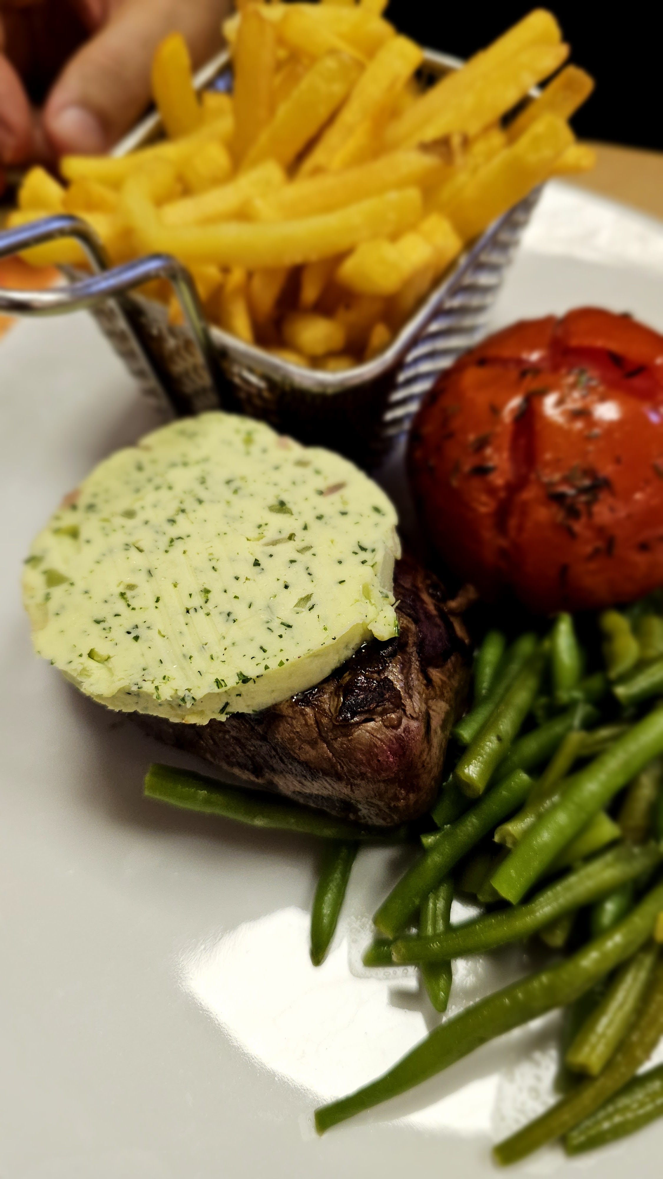 Le personnel était sympathique mais le cadre du restaurant capturait tout le bruit des tables voisines. Pas confortable. J'ai commandé deux steaks. Les assiettes avaient l'air bien. Cependant, la sauce au poivre avait un goût très étrange, sans aucune trace de poivre. Celui au beurre était bien meilleur.