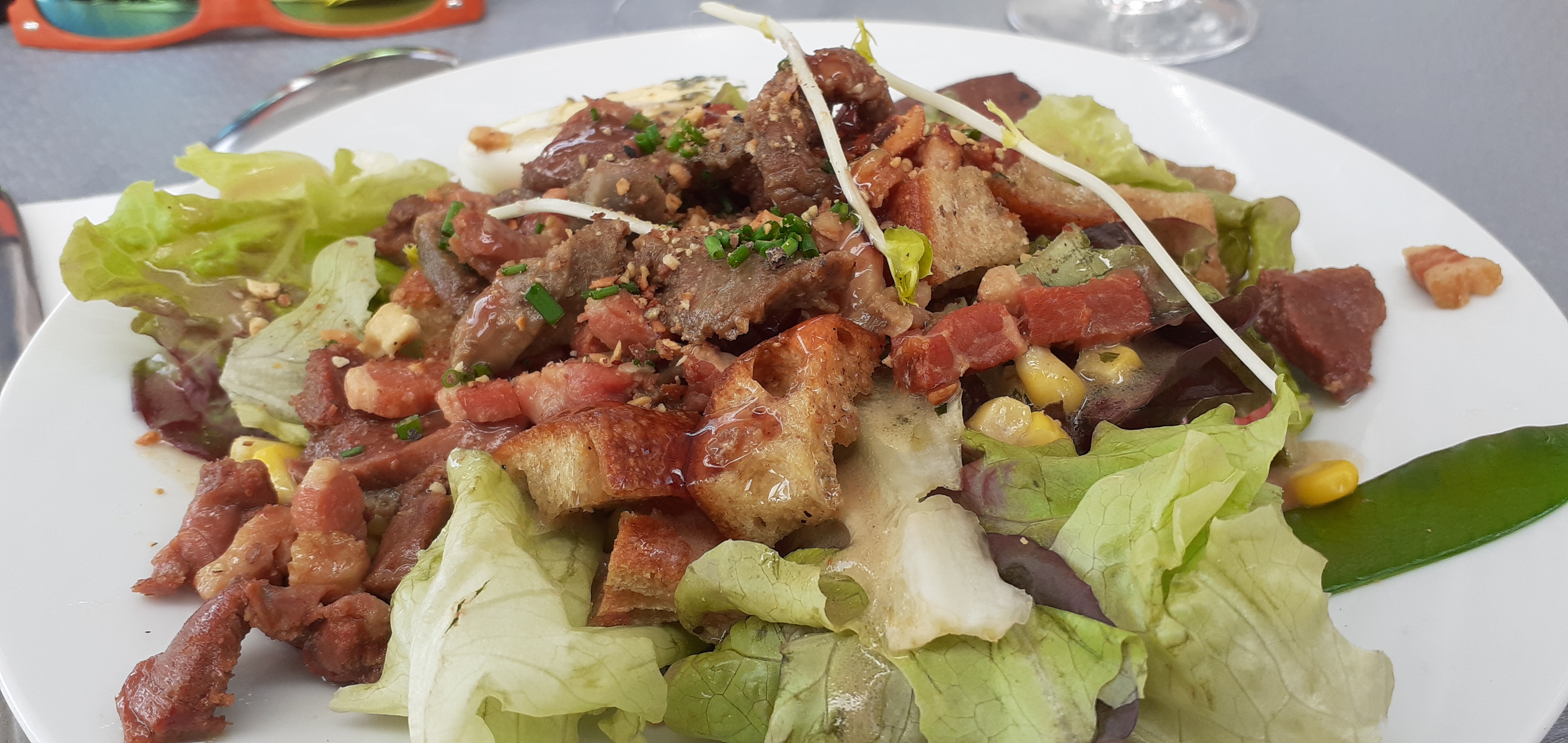 Nous y sommes allés à 3 un midi salade landaise très bonne et copieuse mon mari a pris le chèvre chaud en entrée et le tartare de boeuf....rien à dire....BON nous y reviendrons