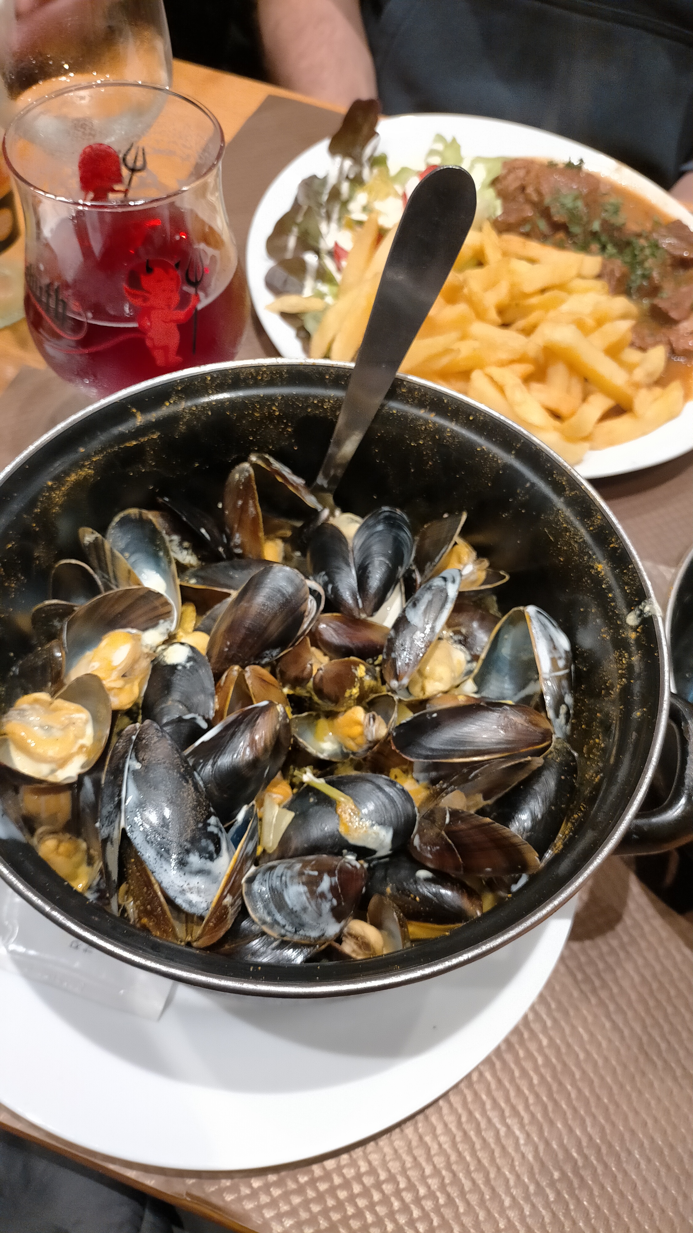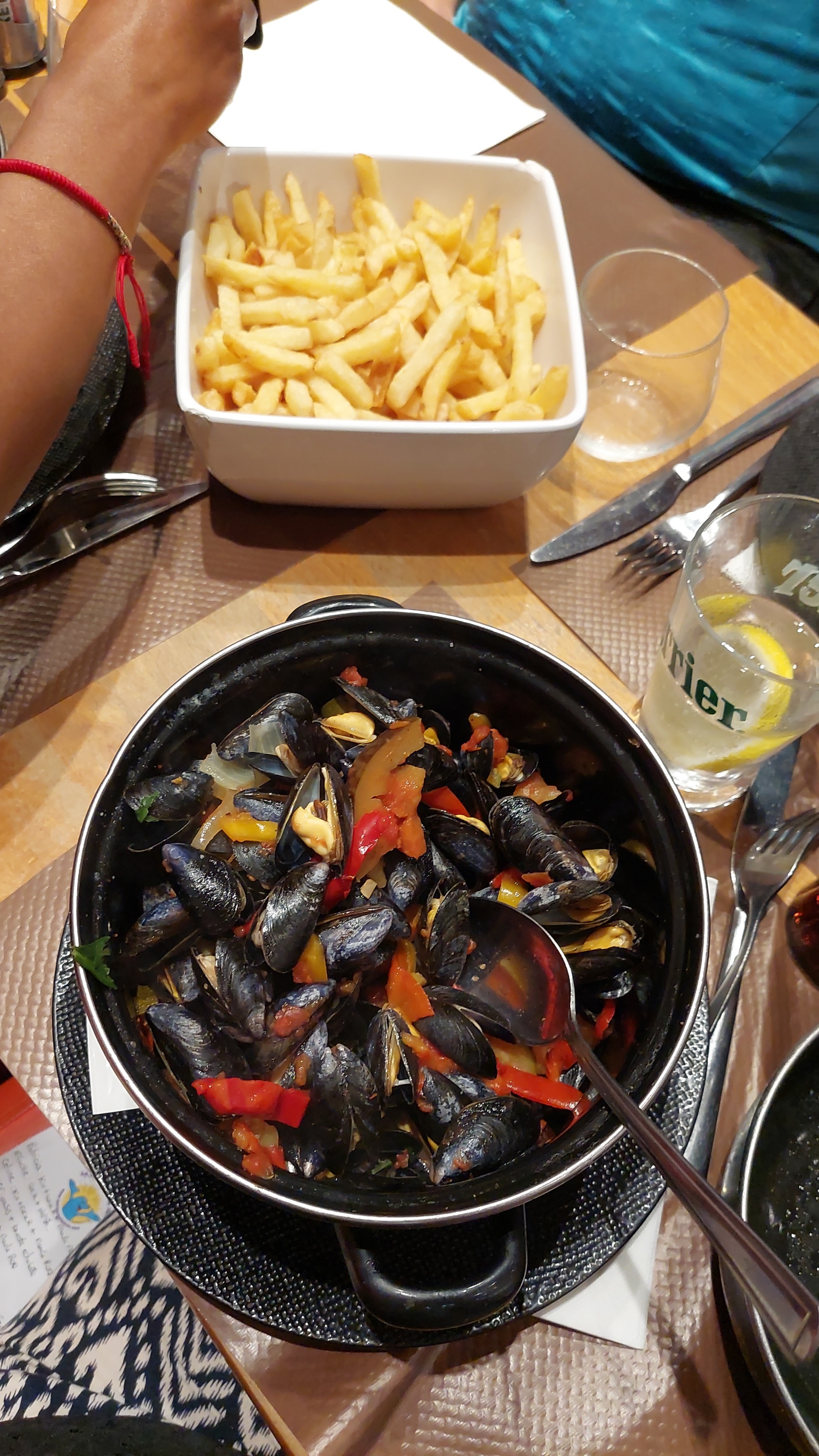 Très bon restaurant, du choix à la carte pour les moules, moi personnellement moule à l' espagnol excellent, le point négatif est que le restaurant, n'est pas climatisé, très bon service, dynamique, un conseil, réserver