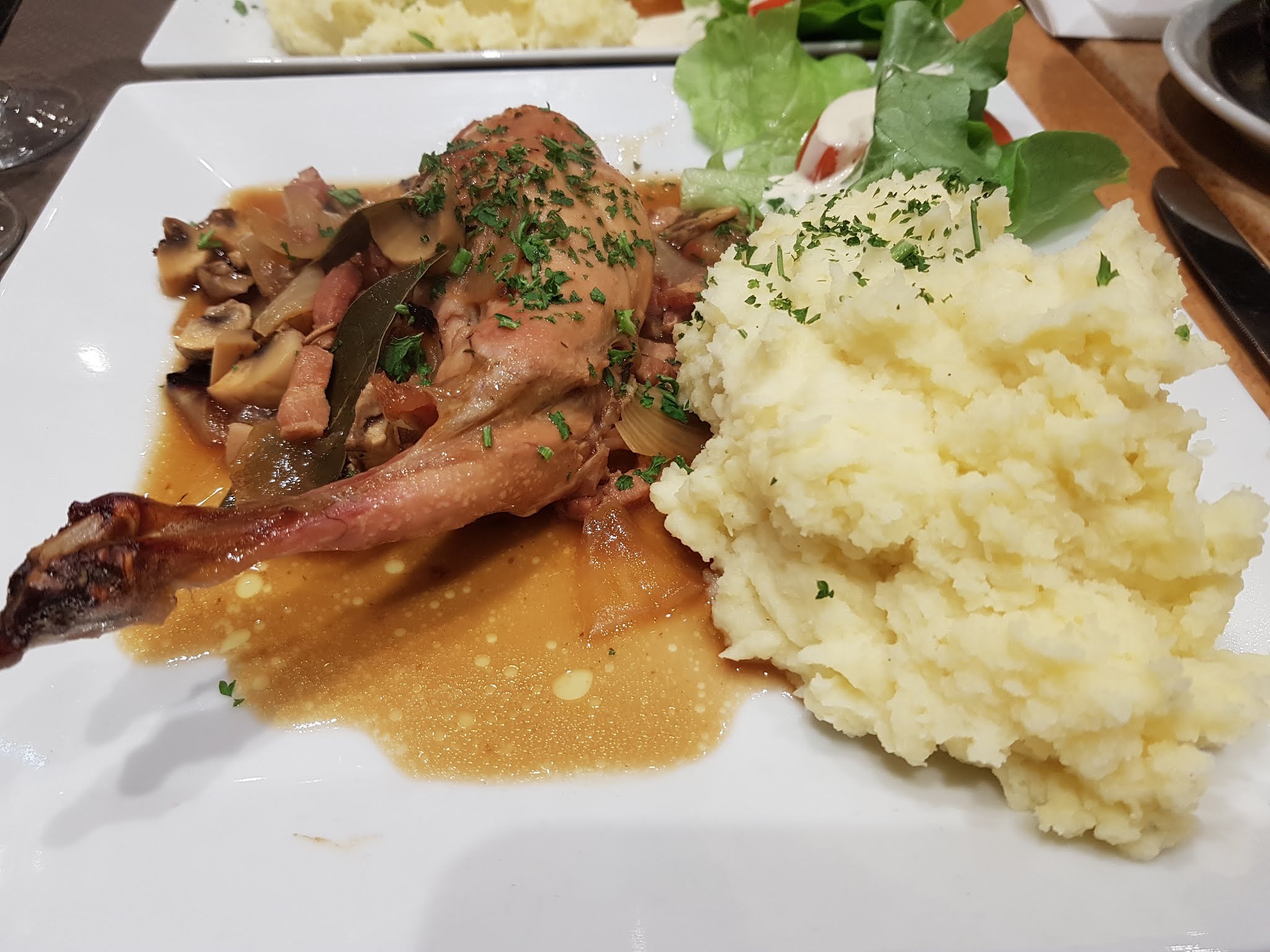 Cuisine de brasserie le potjevlech était très bon dommage les frites étaient surgelés et vite froide la salade en sachet avec une vinaigrette en bouteille ne donne pas envie de finir l 'assiette