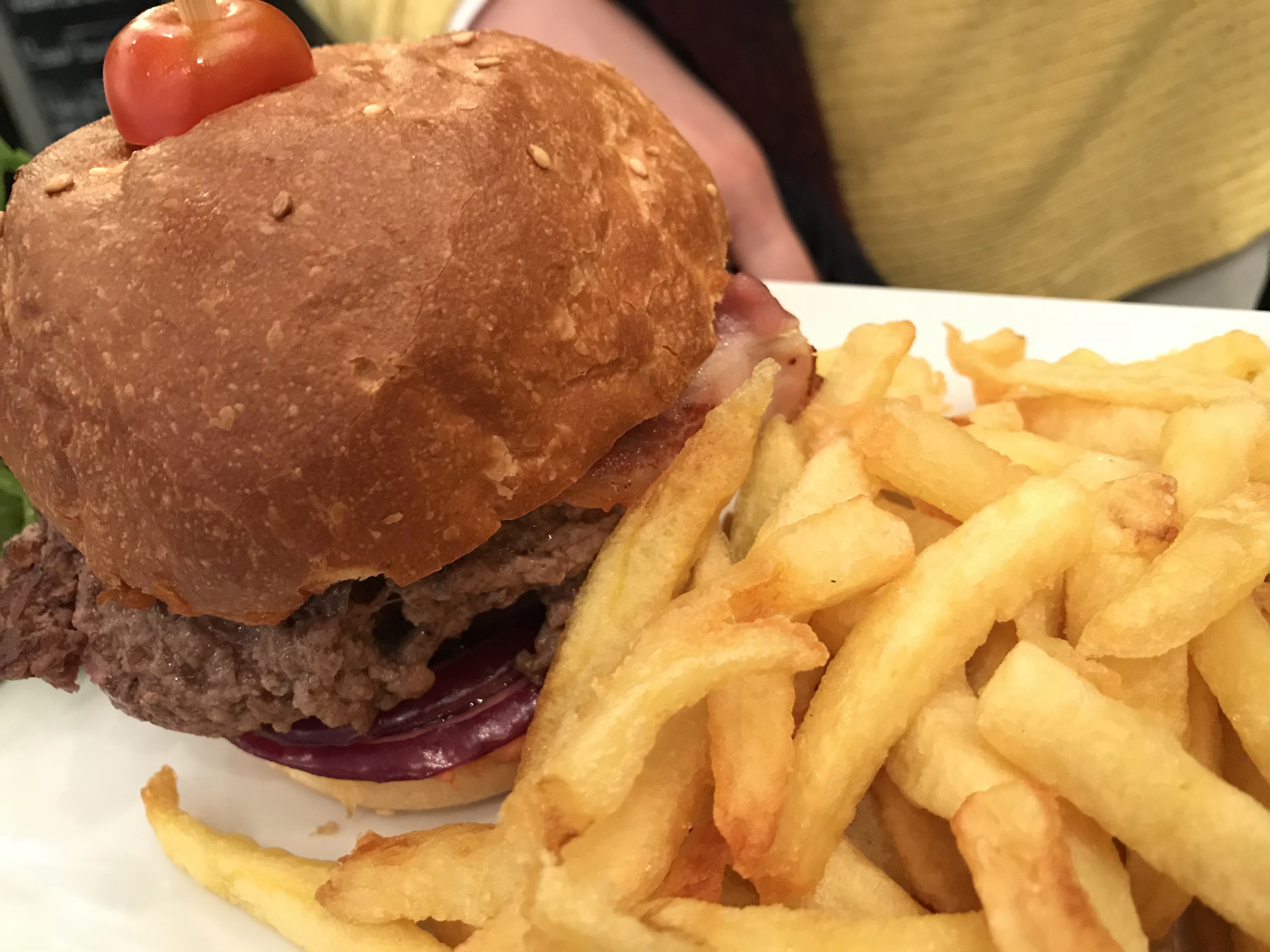 Cheeseburger a 17€ tout juste mangeable. Pain sec, pas de sauce , ma compagne une salade cesar sans sauce.... Le chinon mauvais aussi, 63€ pour 3 plats 2 cafés 1 verre de vin et un lait fraise. Endroit très bruyant au passage avec les bruits de vaiselle. Le personel très sympathique par contre. On nous a offert 2 cafés en dédommagement.