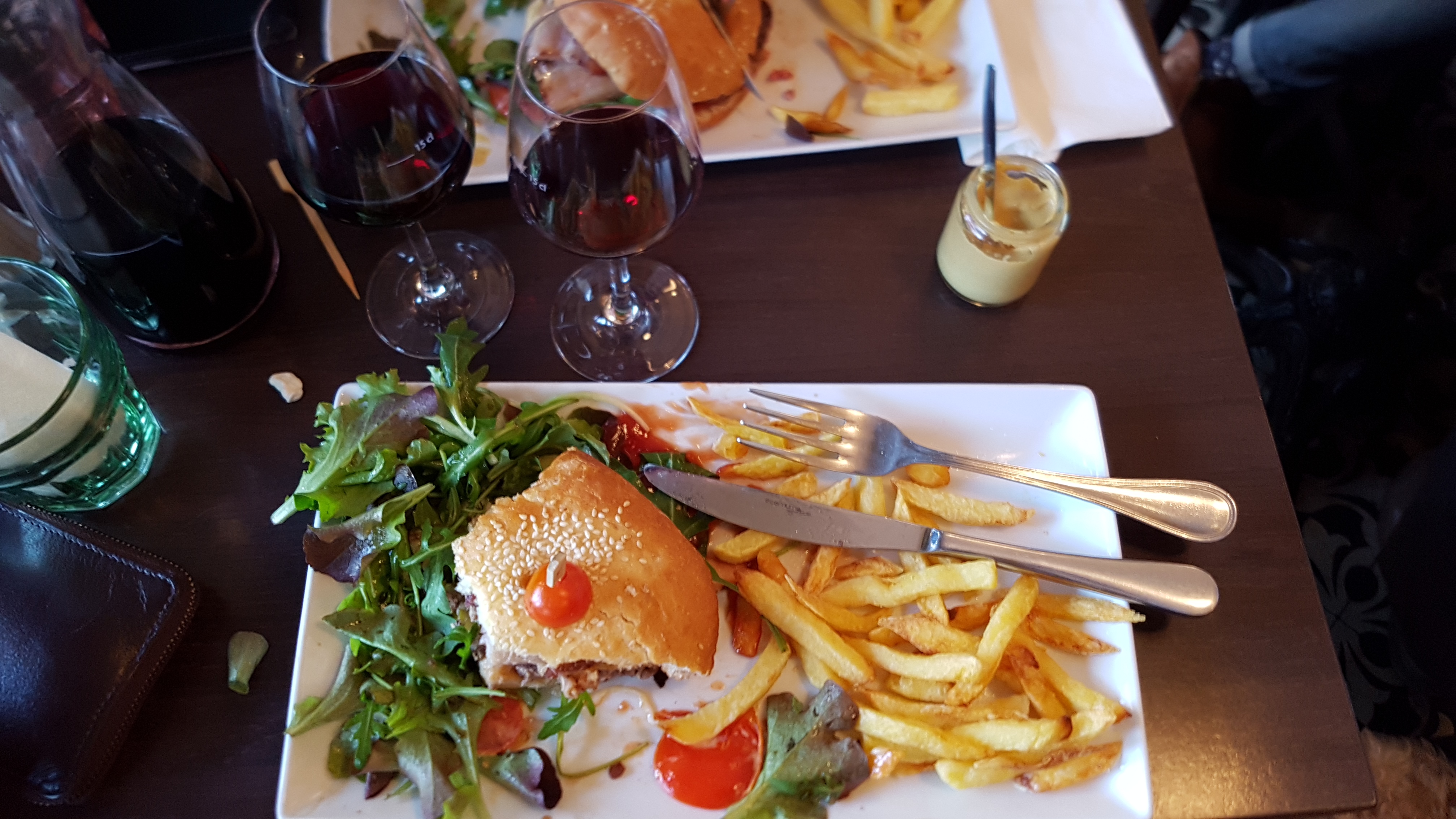 Attente un peu longue avant d'être servis mais grosse affluence en ce lundi férié, alors on compatit Excellent hamburger sancerre, savoureux, avec pain à l'encre de seiche très moelleux Décor très sympa jusque dans les toilettes 8-)