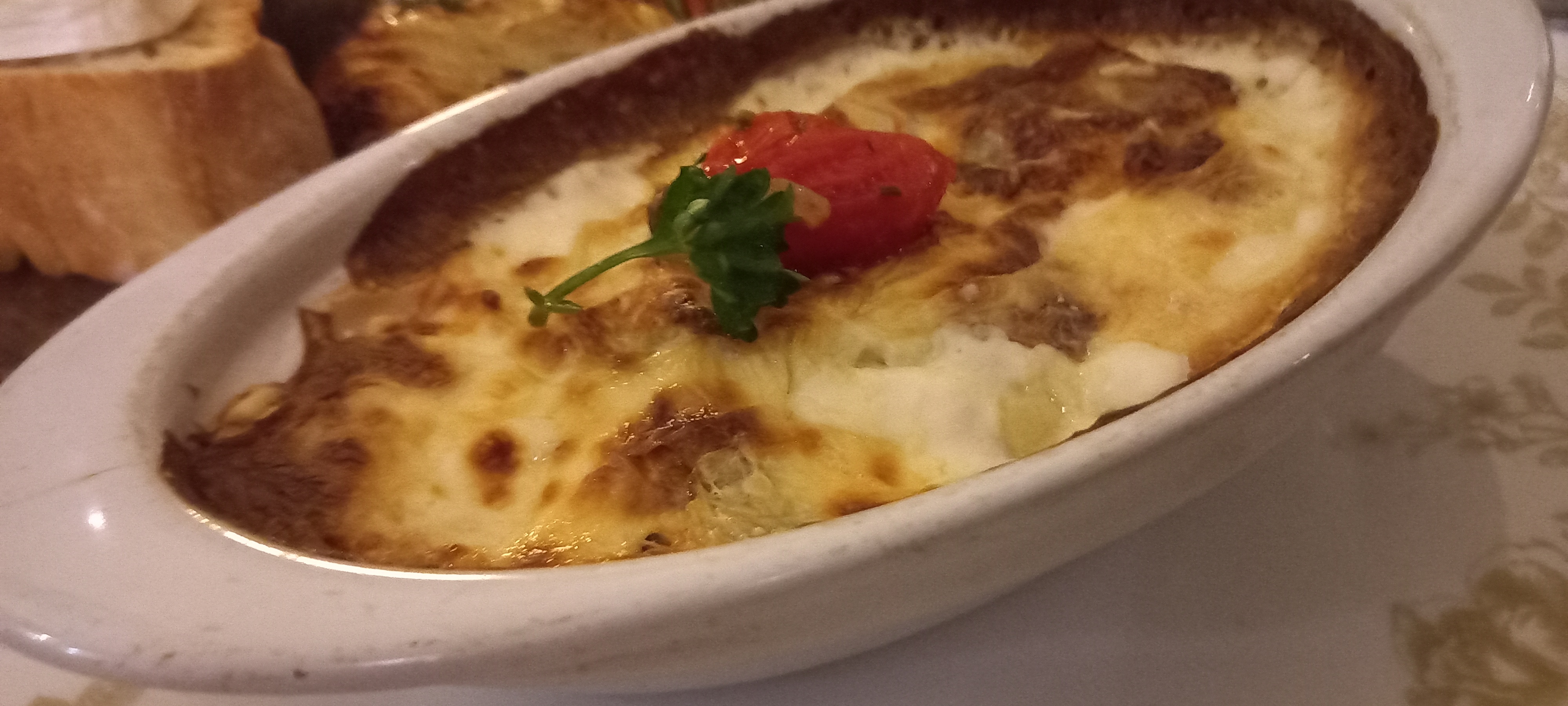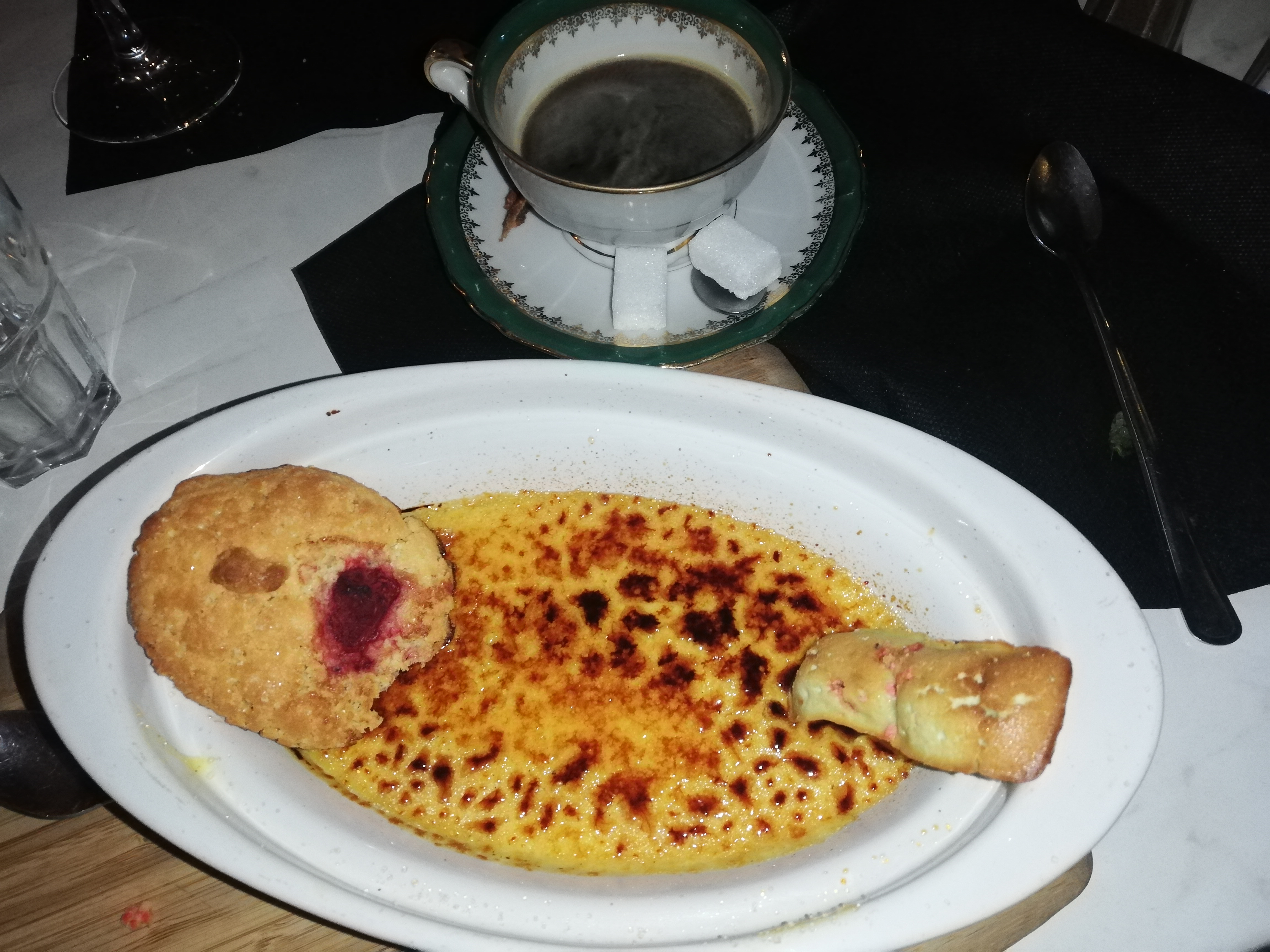Gratin de ravioles aux Saint Jacques : c'était des pétoncles surgelés (mauvaises) Tarte aux pommes : elle a pris toute les odeurs et l'humidité du frigo donc mauvaise Foie de veau : bouilli et servi dans trop d'huile Même le café n'était pas bon