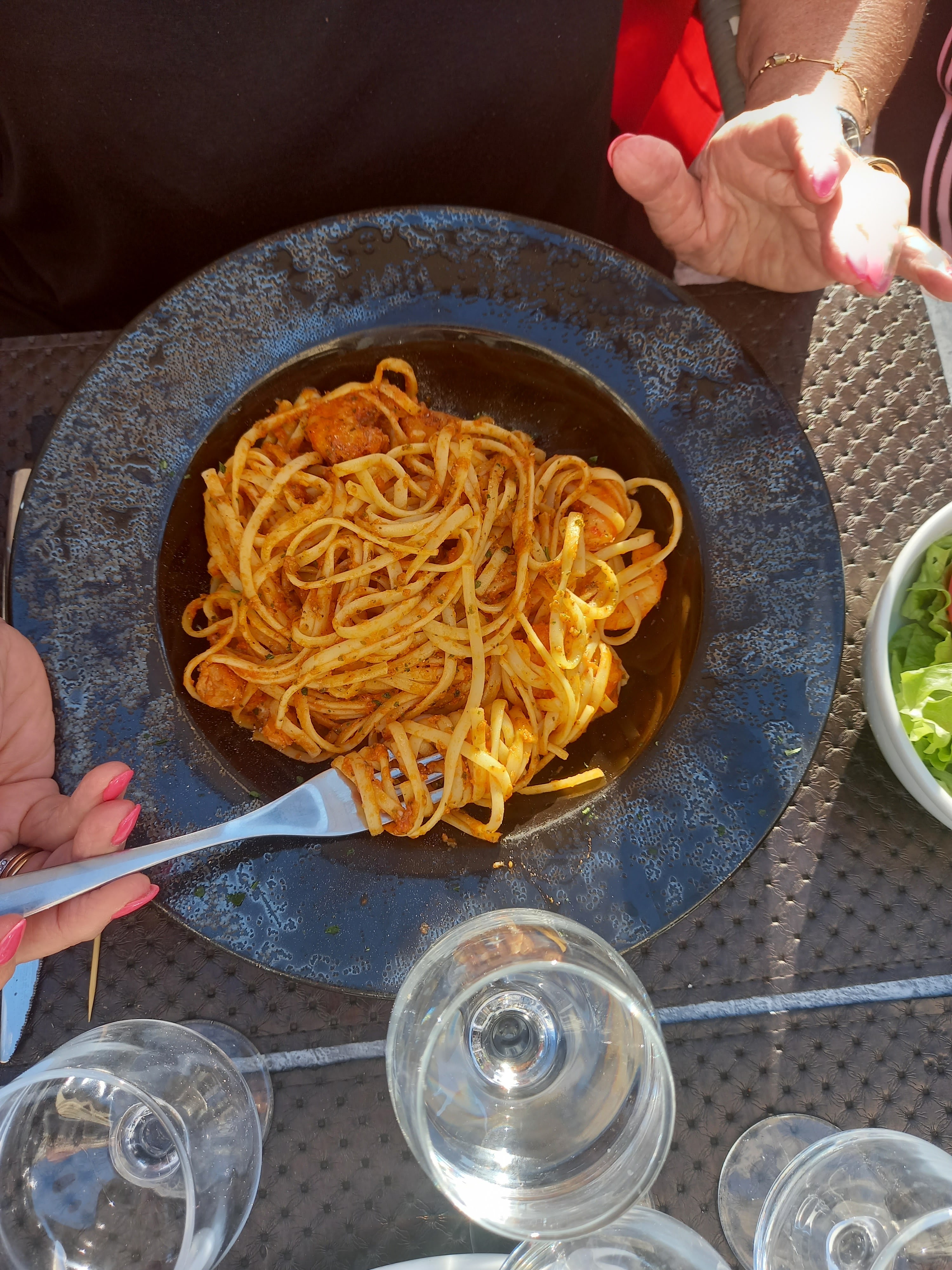 Petit moment agréable passé dans ce restaurant. Farfalles carbonara, linguines crevettes et plancha miam miam. C'était bon et pas assez à mon goût gourmande que je suis. Les tarifs sont abordables Le serveur qui s'est occupé de nous souriant, gentil, agréable. Top. Petit bémol, manger à l'extérieur c'est bruyant et beaucoup de vent. Je recommande ce restaurant.