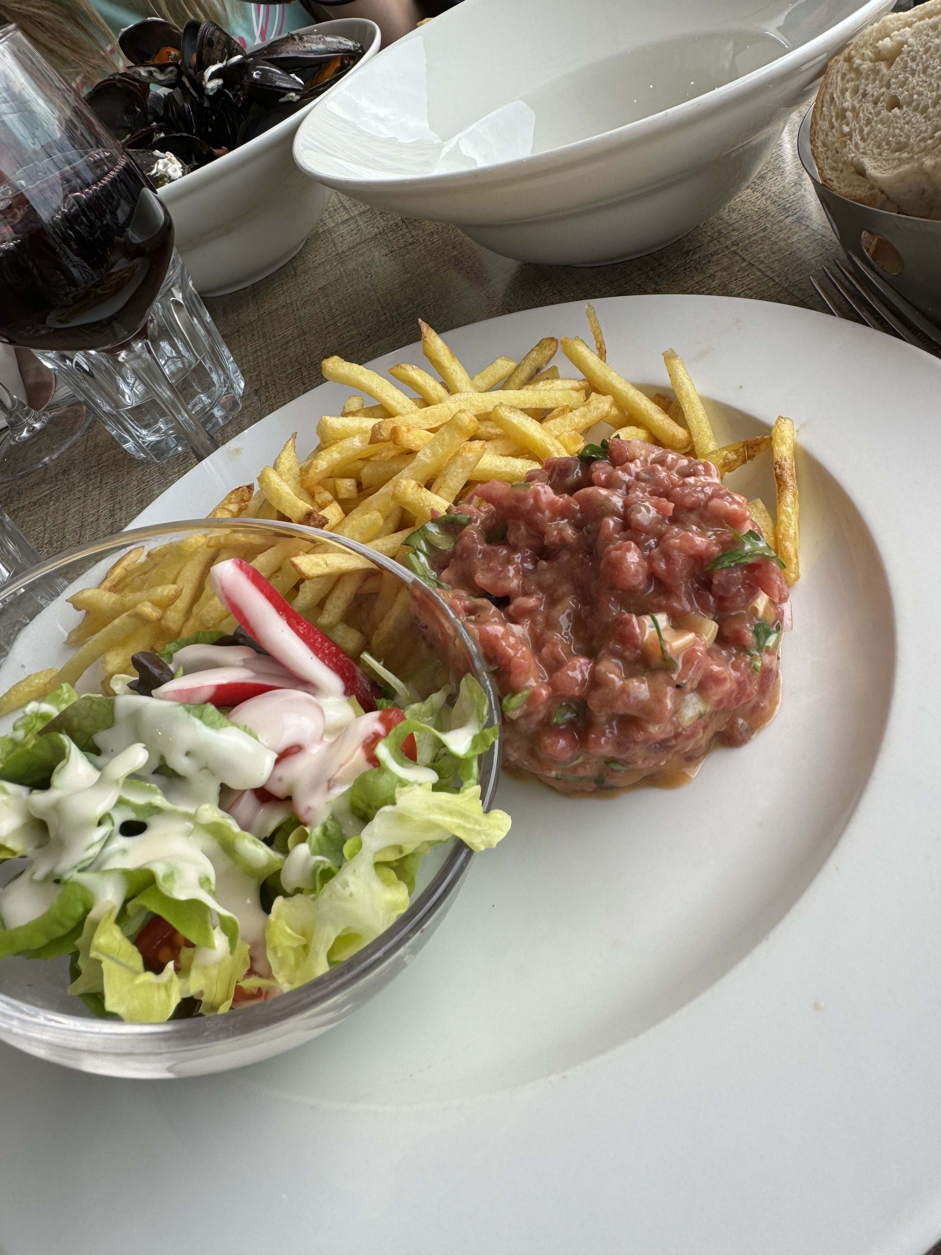 Les moules étaient fraîches et copieuses. La salade était fraîche et agréable. Rien à redire et je reviendrais pour les moules qui prenaient 1/2 heure à manger.