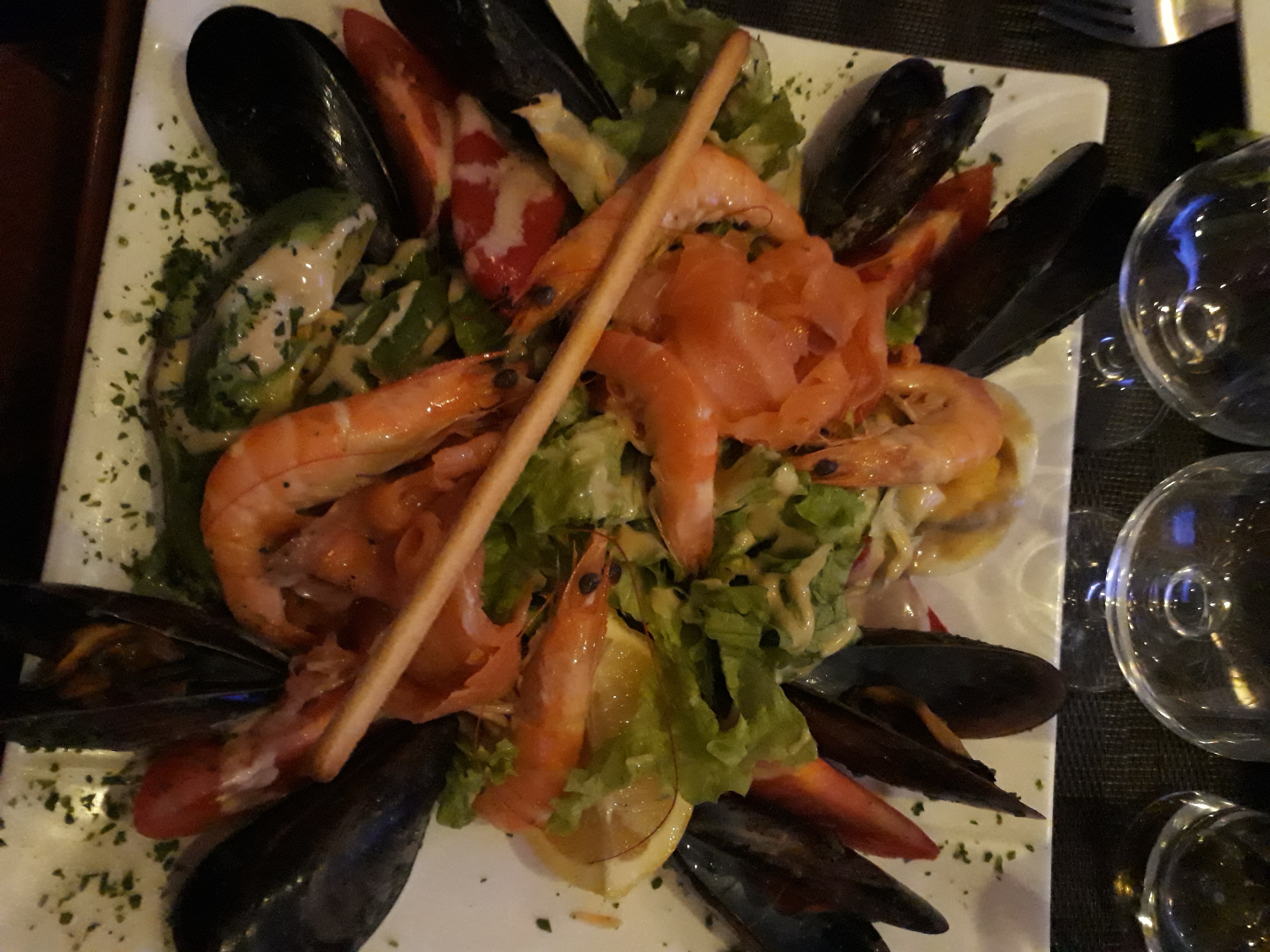 J'avais pris une soit disant plancha avec moules/crevettes/calamar/gambas. Les crevettes étaient trop cuite et aucun goût car congelés. Les moules aussi aucun goût. Sans parler des cafards croisés à l'étage. Et pour couronner le tout je suis malade depuis Lundi. Enceinte au 7ème mois. Grosse arnaque. J'espère qu'il le fermeront car ça risque de tuer des gens.