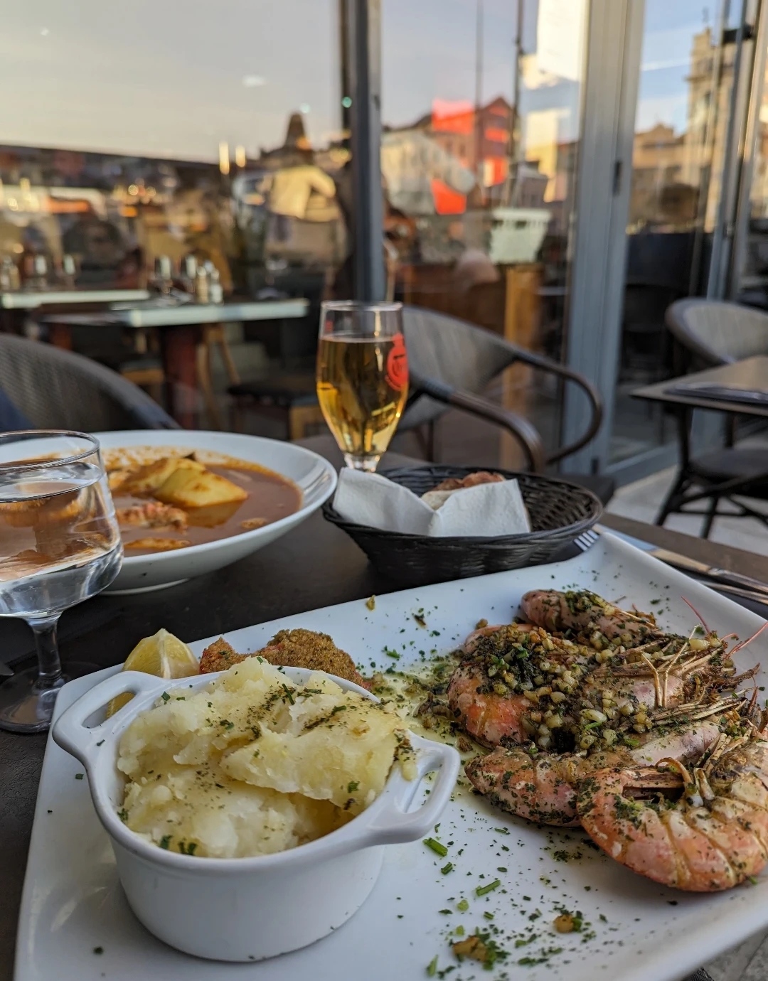 En vacances à Marseille pour la première fois. Nous sommes literalement DÉÇUS de ce restaurant... gambas pas fraîches, trop cuites, calamar cramé mais le pire reste l’attente pour recevoir un plat. Les serveurs ont le temps de boire un verre au bar mais de ne pas prendre les commandes des clients (des clients à côté de nous sont parties car ils en pouvaient plus d’attendre). 24 euros pour un tel plat.. rapport qualité prix plus qu’honteux. En outre, nous ne recommandons PAS DU TOUT ce « restaurant »...
