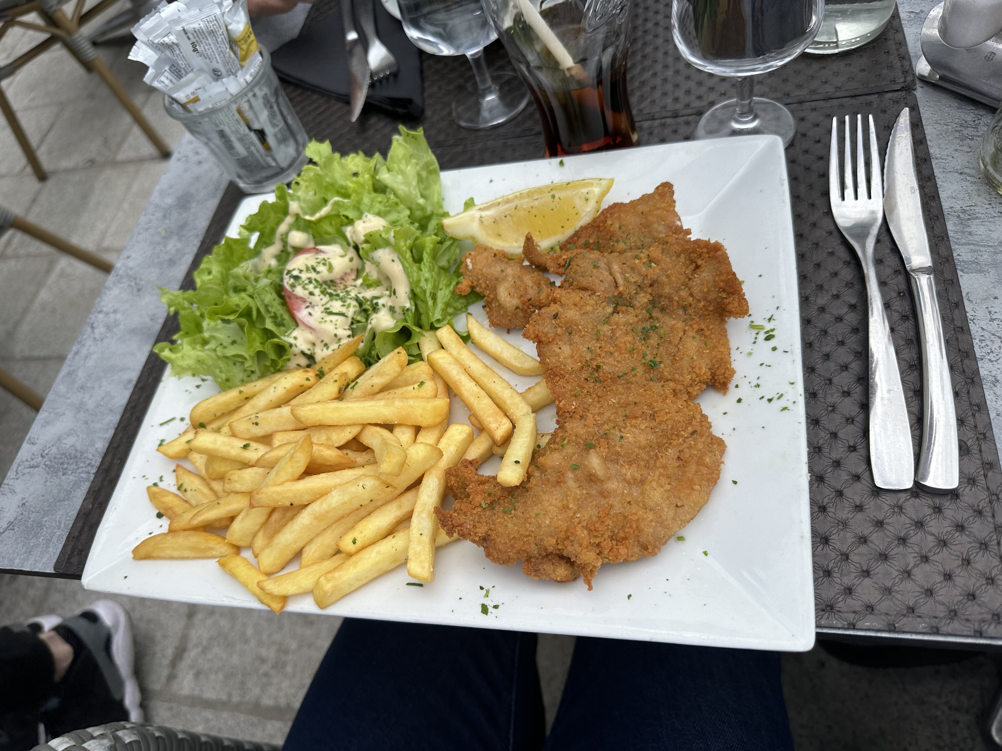 Franchement, nous avons bien mangé. Plat du jour, filet de lieu accompagné de pommes vapeur et haricots correct. Assiette de fromages parfaite. Service assez rapide et serveurs dynamiques et agréables. Seul bémol, toilettes très propres, en étage, inaccessibles aux personnes à mobilité réduite...