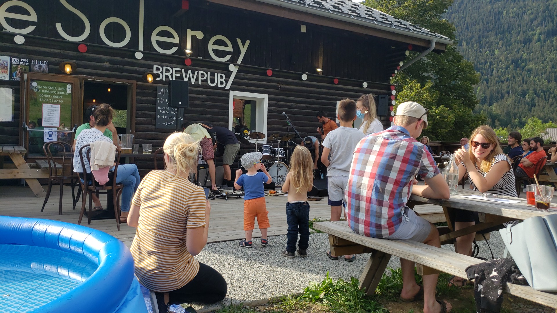 Bonne ambiance, bonne musique, les montagnes en voisines, une soirée superbe avec un groupe de musique, de musiciens et chanteuses talentueuses, une bière brassée sur place, à déguster avec l'autre... comment il s'appelle ??? Haa oui modération !!!! Sans parler de la restauration qui est délicieusement bonne !!!!