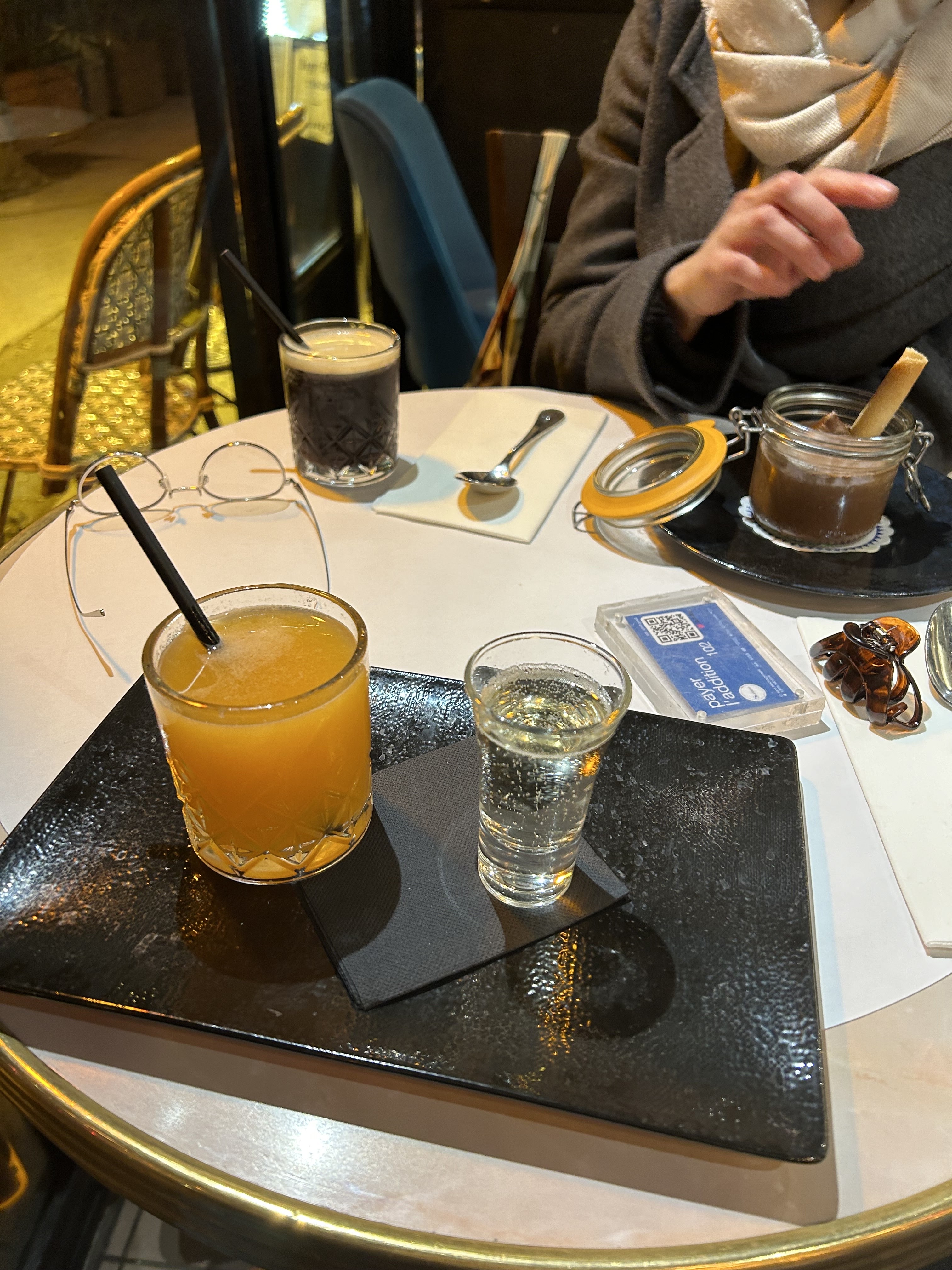 Nous sommes arrivés vers 11 heures du matin pour un petit-déjeuner. Le monsieur parlait anglais et m'a expliqué la différence entre le petit-déjeuner français traditionnel et le petit-déjeuner international. J'ai pris le petit-déjeuner français et j'ai eu le meilleur presse-orange de ma vie. Je ne suis pas fan des fruits aigres, mais c’était un tout autre niveau de saveur. Je pourrais en avoir 2 ou 3. Je ne suis resté qu'une demi-heure environ, mais ce fut une bonne expérience. Le café en lui-même est très joli.