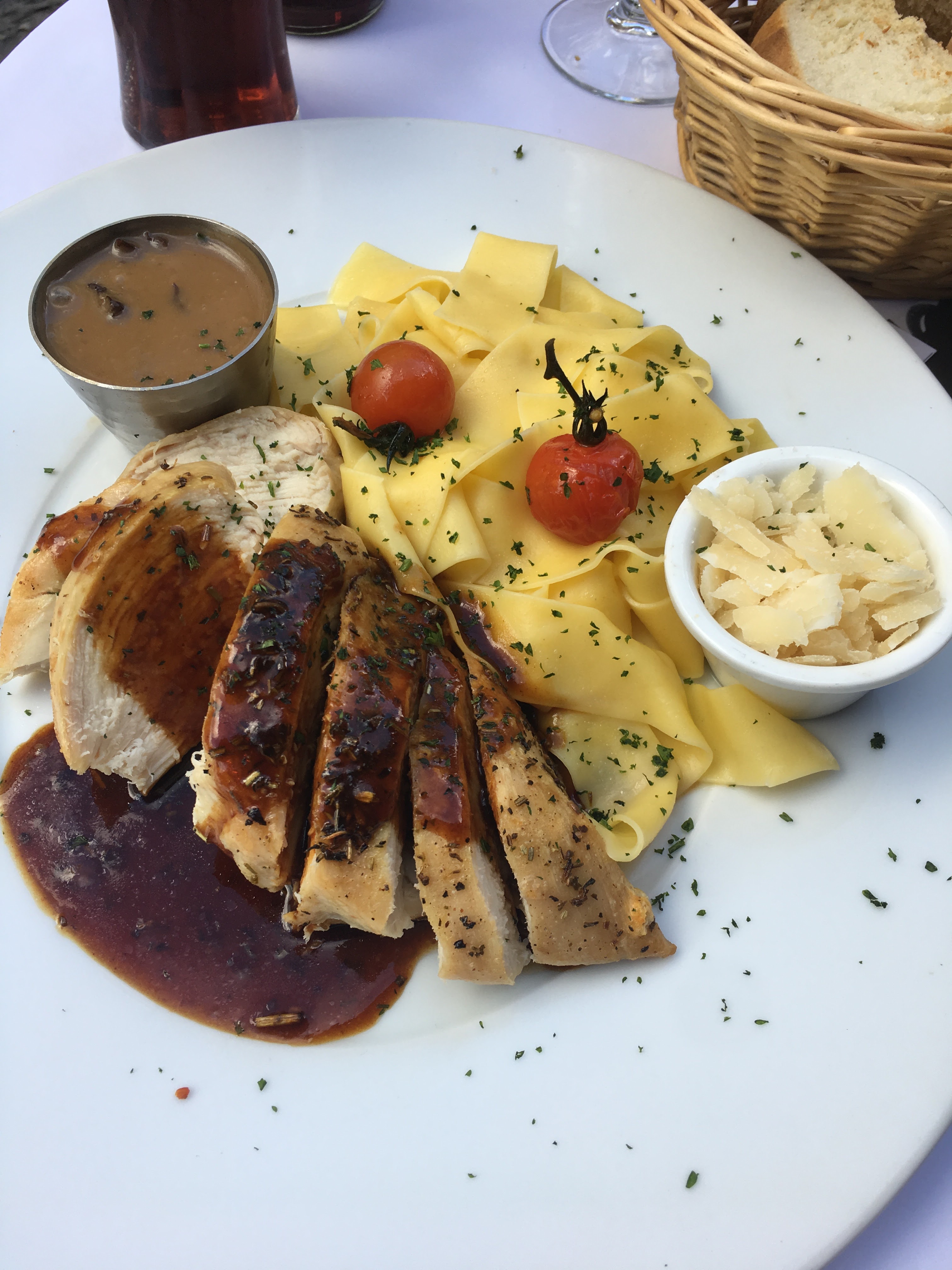 Les plats du jour et l'emplacement/la vue sur les bâtiments autour de cet endroit sont ce qui m'a attiré au Solferino. Même si le poulet aurait pu être un peu moins cuit, je préfère prévenir que guérir, surtout lors d'un voyage à l'étranger. Les pâtes étaient parfaites avec une garniture à verser dessus. La marinade/sauce sur le poulet était légère mais savoureuse. Le parmesan frais était délicieux. Je commanderais à nouveau sans hésitation.