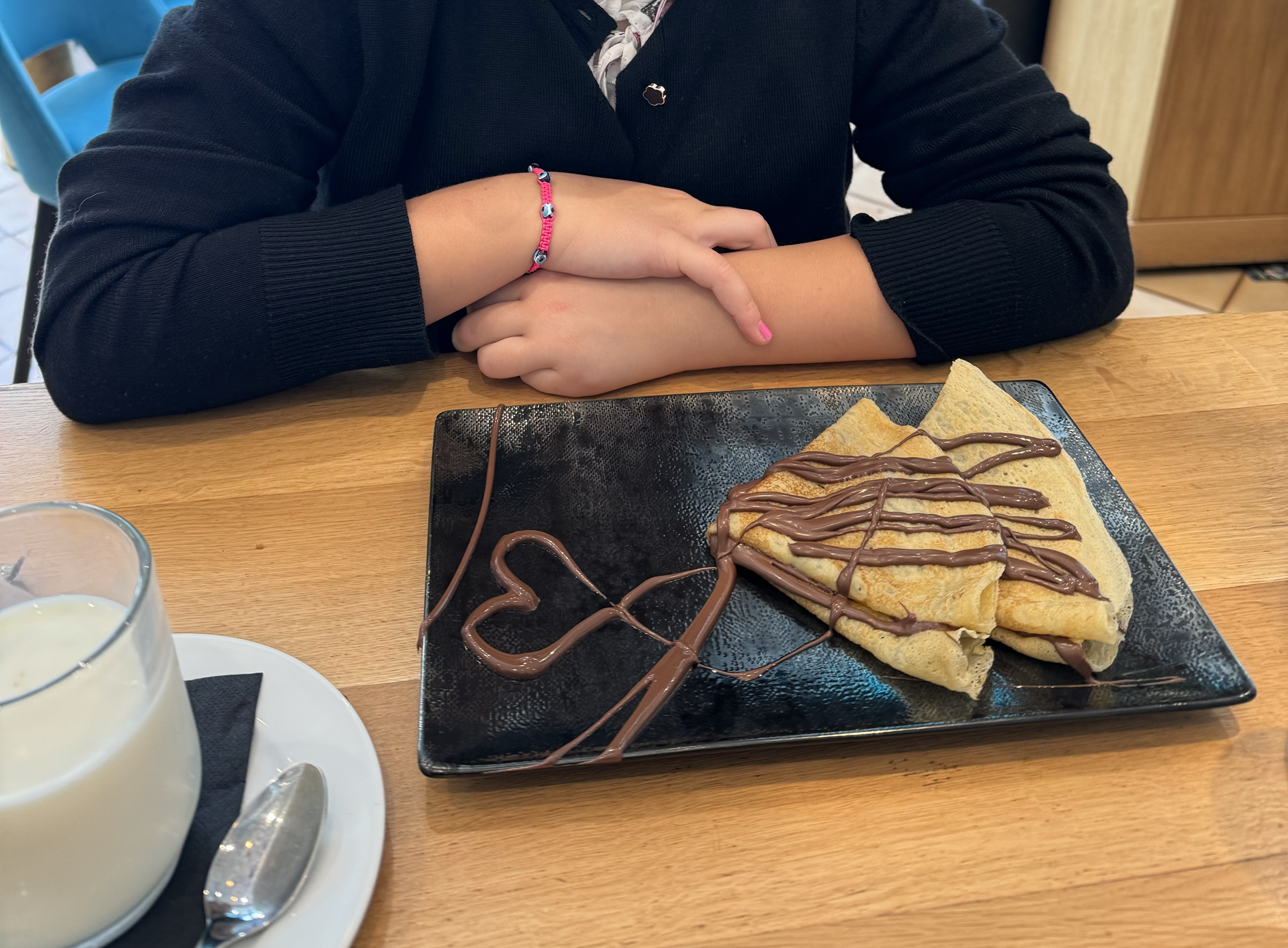 J'ai été surpris de voir des critiques négatives. L'endroit était incroyable, à l'exception de la dame de la réception qui ne sourit jamais et est un peu impolie. Elle a toujours l'air de se précipiter quelque part, ce qui distrait les clients. Ma fille a mangé des crêpes au Nutella, elles ont fait une forme de cœur avec du Nutella en servant, et cela l'a rendue si heureuse. Nous avons mangé un filet de poisson avec une sauce au yuzu, je peux dire que c'était le meilleur poisson que j'ai jamais mangé. Très savoureux. J'ai eu une salade avec du pain au chèvre frais. C'était aussi parfait ! Ma fille a eu des lasagnes aux légumes, c'était aussi très délicieux. Les serveurs étaient sympathiques et le service était rapide et la nourriture était fraîche !