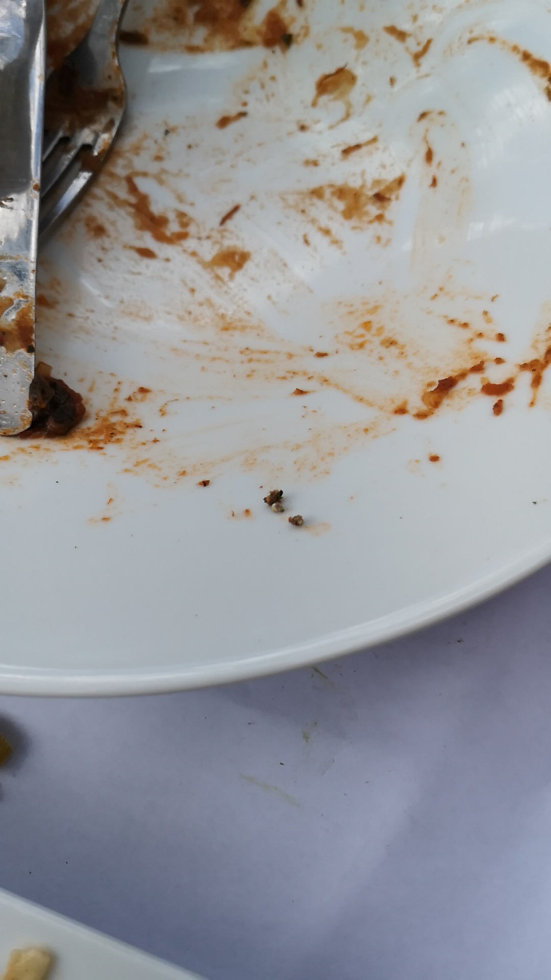 La nourriture ici est très mauvaise. C'est un gâchis de nourriture en conserve. Terrible. Je n'ai jamais vu quel genre de nourriture de mauvaise qualité comme celle-ci.