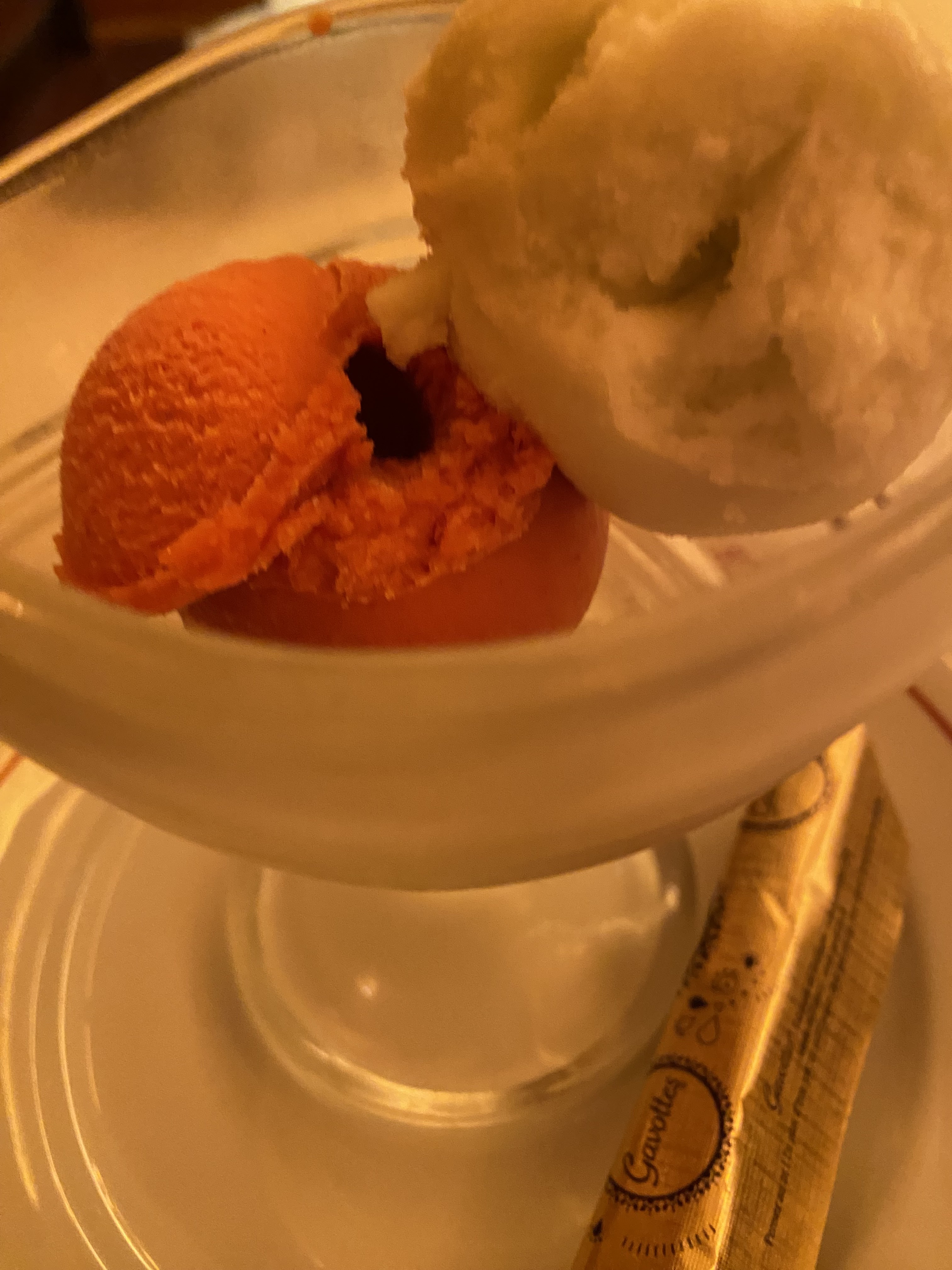 Arrivée au restaurant le 25/11/2021 a 19h30.. avec une amie ..prise de commande à 19h35 ..20h40 toujours pas de plat ..j appelle le serveur qui me confirme que ma commande n est pas partie en cuisine…le serveur me présente ses excuses et me promet de m offrir de ses propres deniers les desserts ..j ai commandé des profiteroles que j avais décidée de partager ..le serveur nous a apporté une assiette avec 3 profiteroles et 2 cuillères. bien sûr normal en temps de covid . J ai finalement pu interpeller le directeur du restaurant pour lui faire part de mon mécontentement .il avait l air étonné ..de tous ces désagréments en confirmant qu il manquait un serveur au service du soir. Très déçue du service ..j attendrais un peu avant d’y retourner .