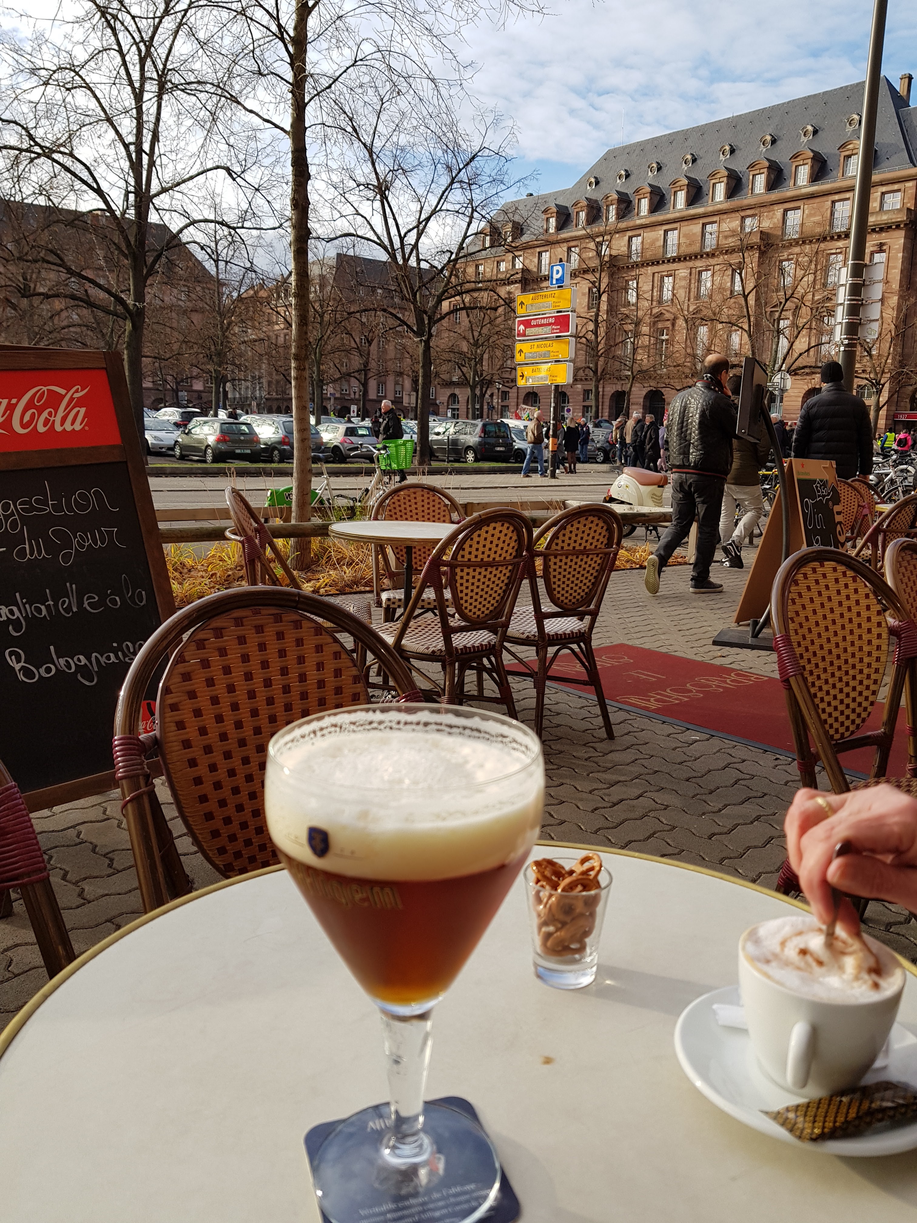 Une brasserie située près du parking de la bourse à Strasbourg. Il n'y avait qu'un café et la qualité était faible. Ils servent également de la nourriture, y compris des repas pour le déjeuner, mais je ne peux pas les décrire. Le personnel fait du bon travail, mais il n'y a rien à dire de particulier.