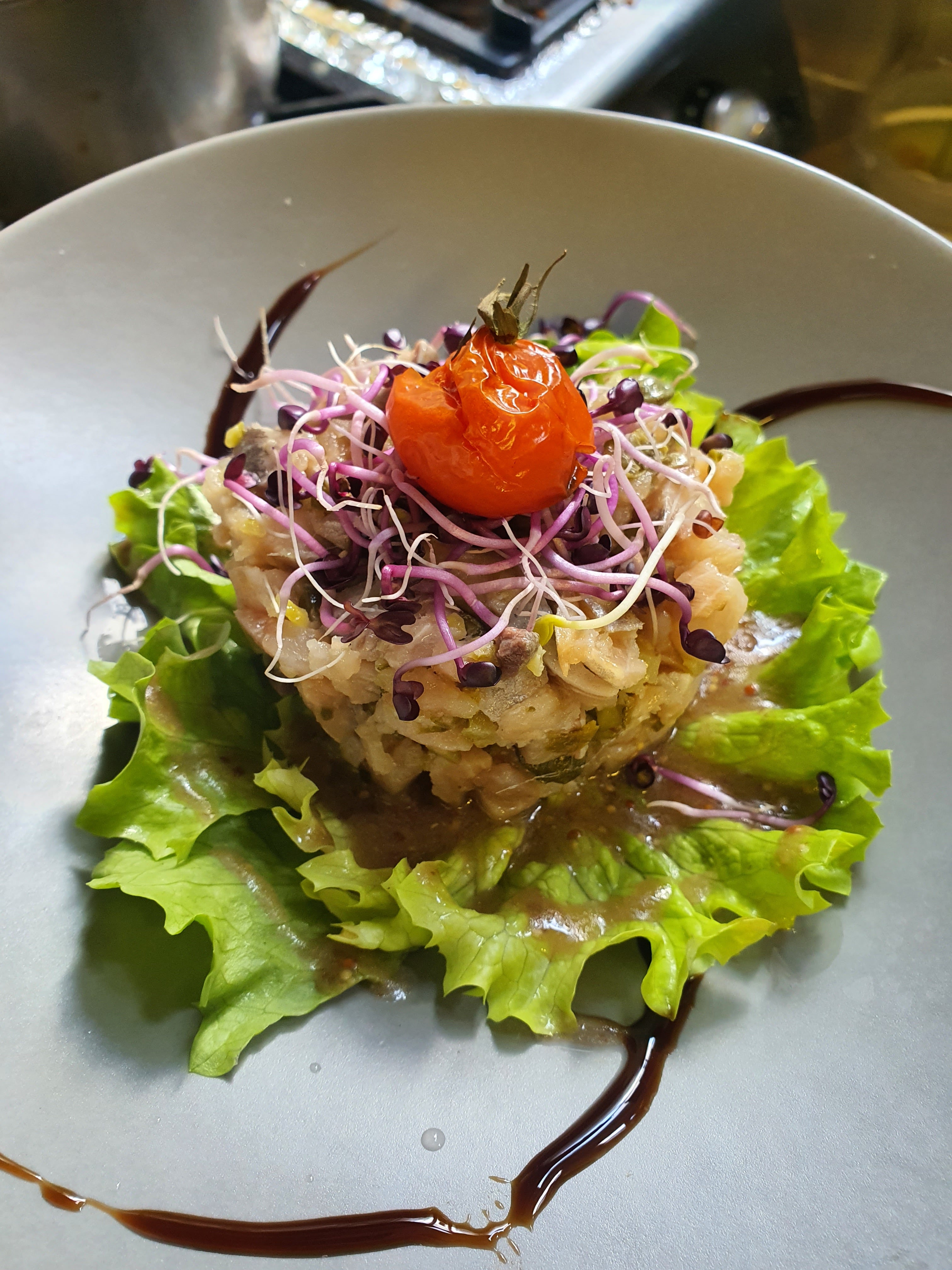 Nourriture de qualité plus que moyenne (ça sent le surgelé), en guise de tartare un pauvre steak haché. Pour vous répondre je ne me prend pas pour un guide Michelin je n’ai pas cette prétention, si la qualité de vos aliments est égale à votre orthographe cela promet. Après autant de temps passé sans restaurant on s’attend à bien mieux que des légumes surgelés, et un steak haché pour tartare.