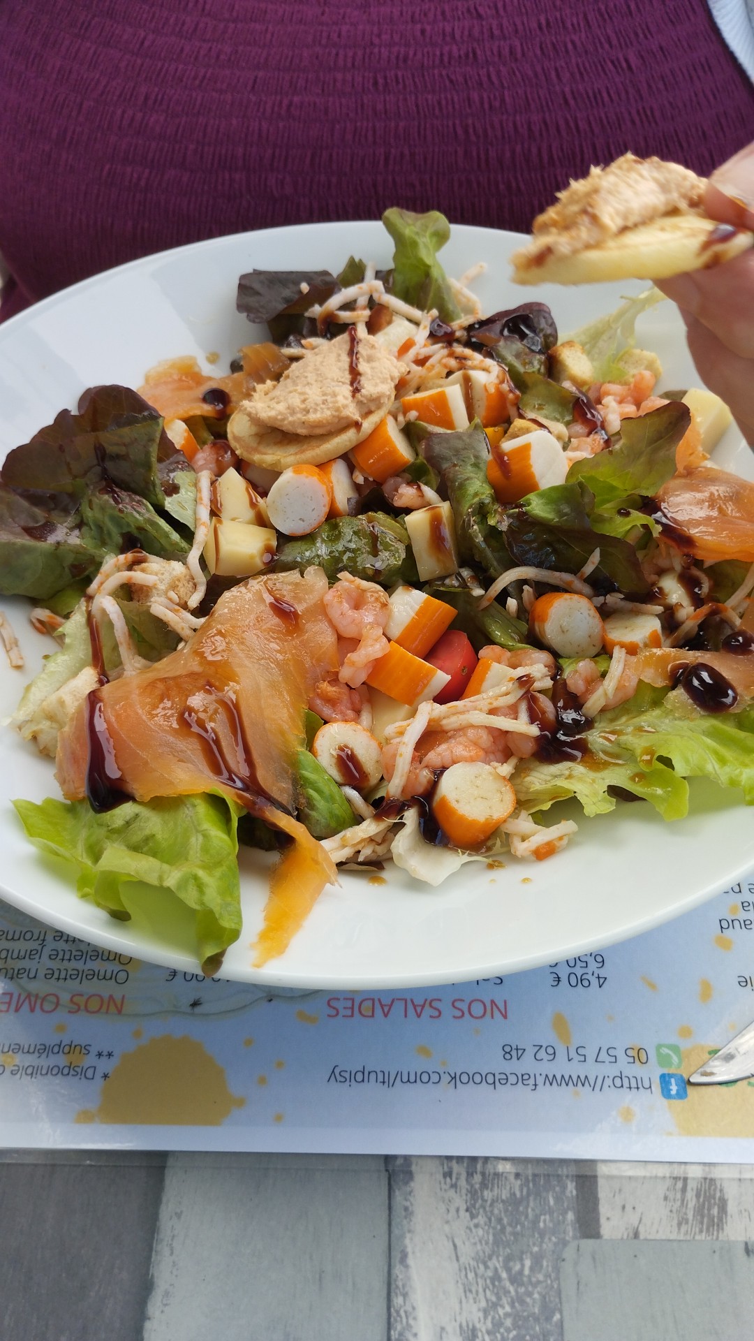 Très bonne salade gourmande, accueil parfait, rapide, produits simples mais de qualité Très bonne idée la proposition de la demi demi pression pour 2€