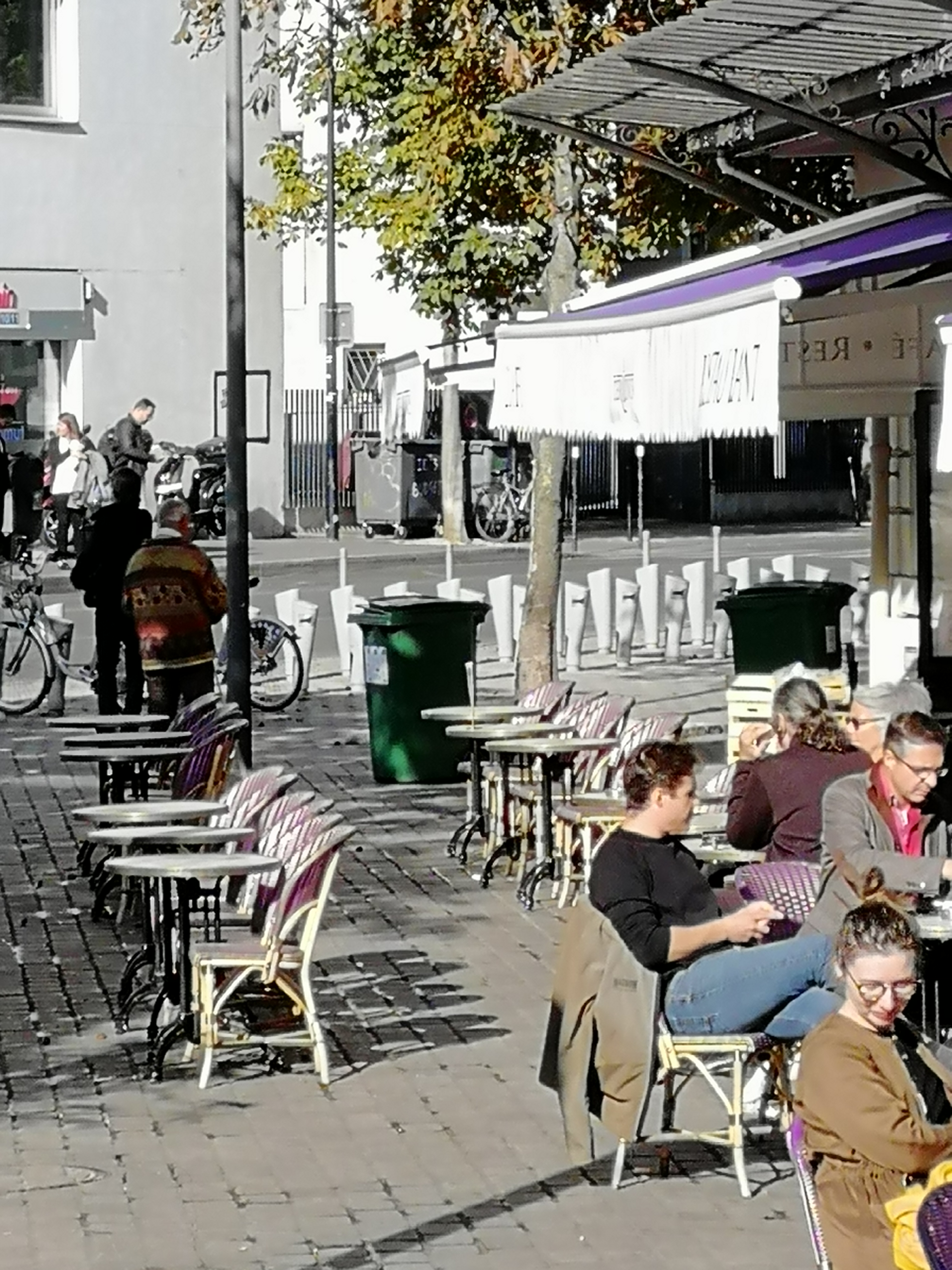 Terrasse agréable pour boire un café à l’ombre des parasols, servi rapidement et avec le sourire