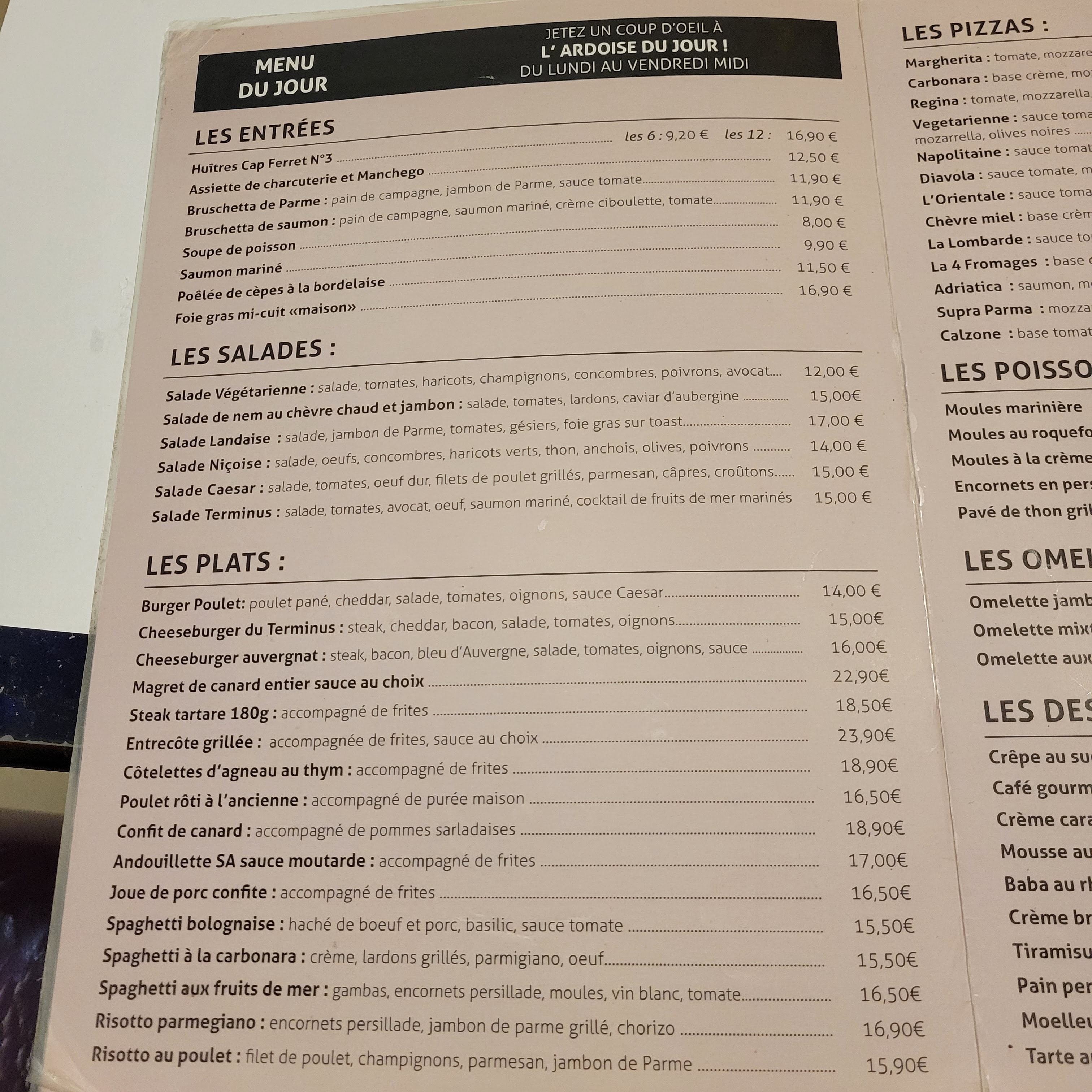 J'ai dîné au Terminus hier soir avec mon copain. Pizza Margarita DÉLICIEUSE. Serveurs sympathiques. Malheureusement, si vous mangez en terasse vous risquez d'être abordés par les alcoolos de Bordeaux, mais cela n'est pas la responsabilité du restaurant.