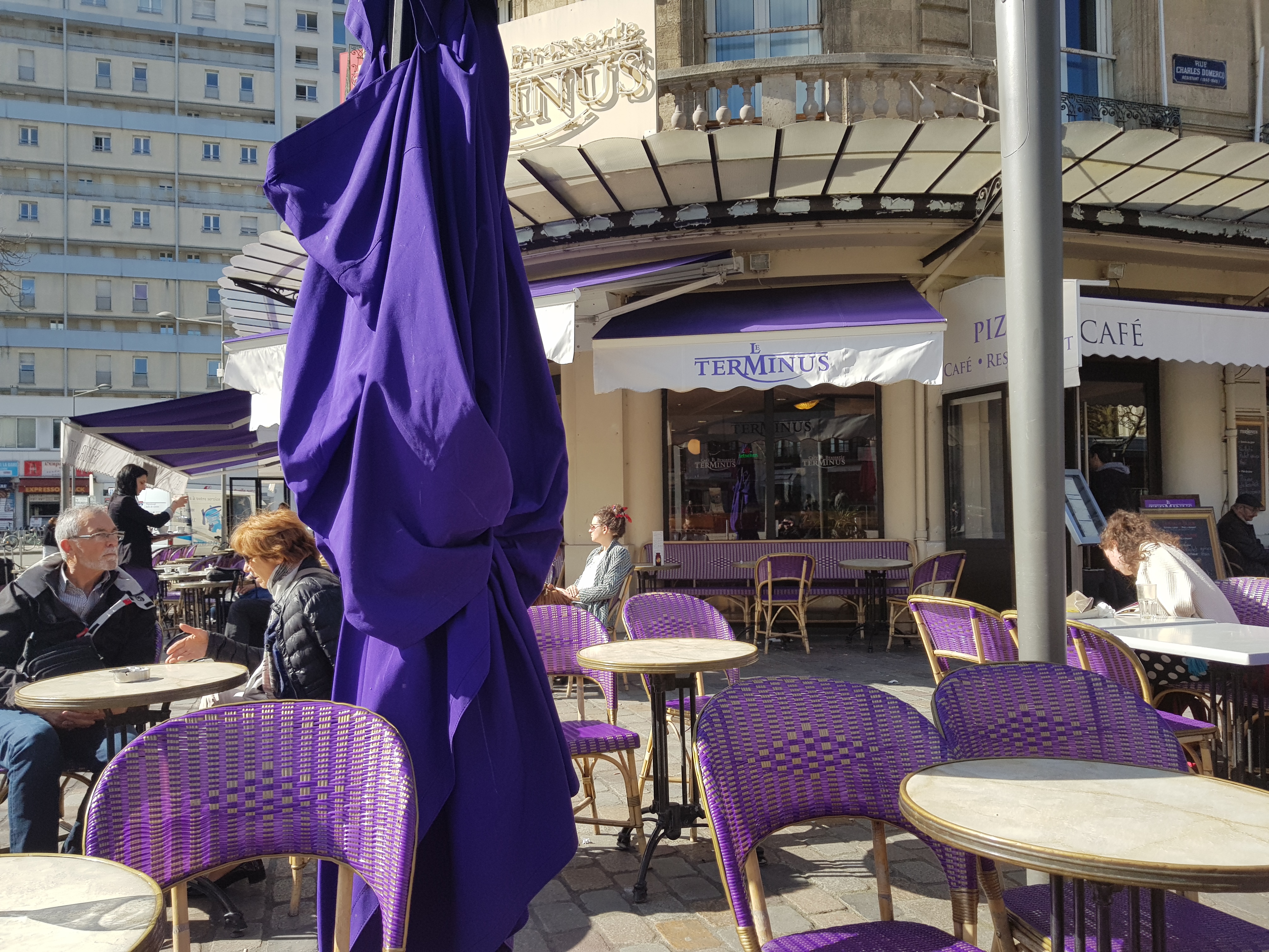 La brasserie la plus sympa du parvis de la gare Saint-Jean à Bordeaux. La terrasse est grande et nous n'y sommes pas tassés comme sur les autres brasseries à proximité, emplacement idéal juste en face de la gare et du TRAM et les lieux sont beaux. Les serveurs sont adorables, souriants, prévenants, rapides et les assiettes sont tout autant copieuses que bonnes, pour un prix raisonnable. Ma famille et moi même y allons depuis des années lorsque nous prenons le train l'été et c'est un plaisir renouvelé à chaque fois! Je ne comprends pas les mauvais commentaires qui sont postés car je n'ai jamais vécu cela. Les toilettes sont en règle général propres, s'il y a quelques frites tombées sur le sol, rien de délirant, il y en a autant sur les terrasses des établissements voisins, et au moins, au Terminus, le lieu est assez calme pour permettre aux moineaux de venir les emporter :) A titre personnel je n'ai jamais attendu plus de 10 minutes pour être servie. Bref, je recommande !