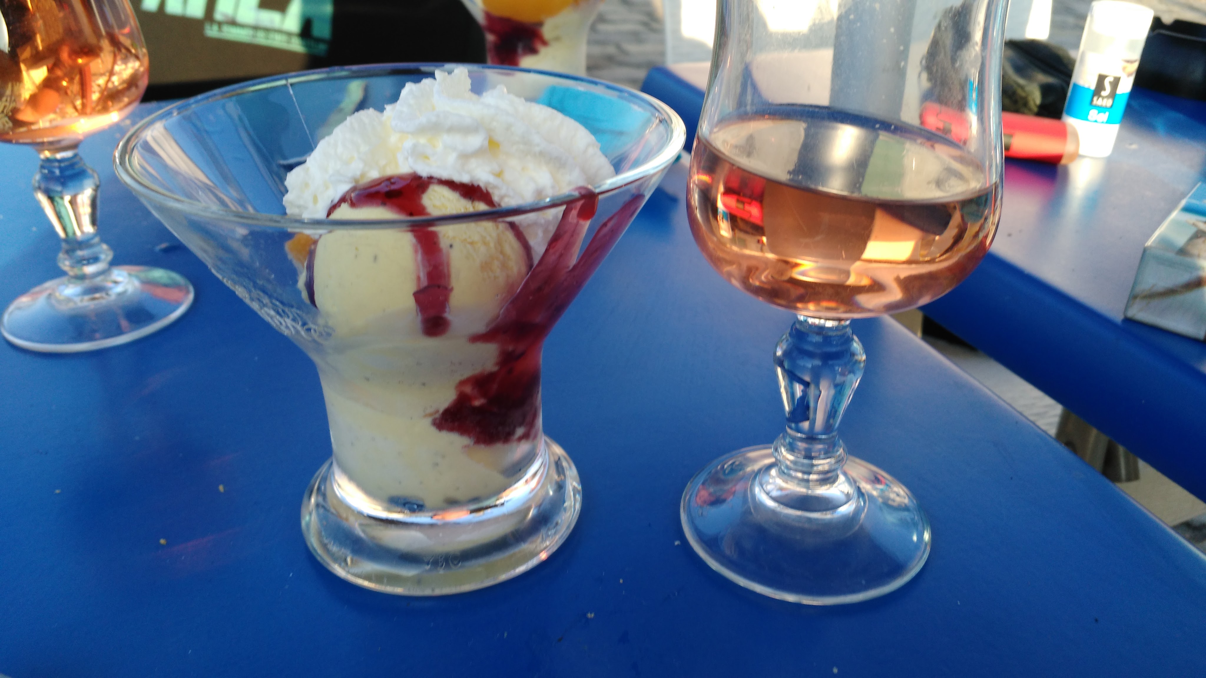 Simple mais agréable devant l'embarcadère... Quand il fait soleil ! Une petite planche apero à partager !