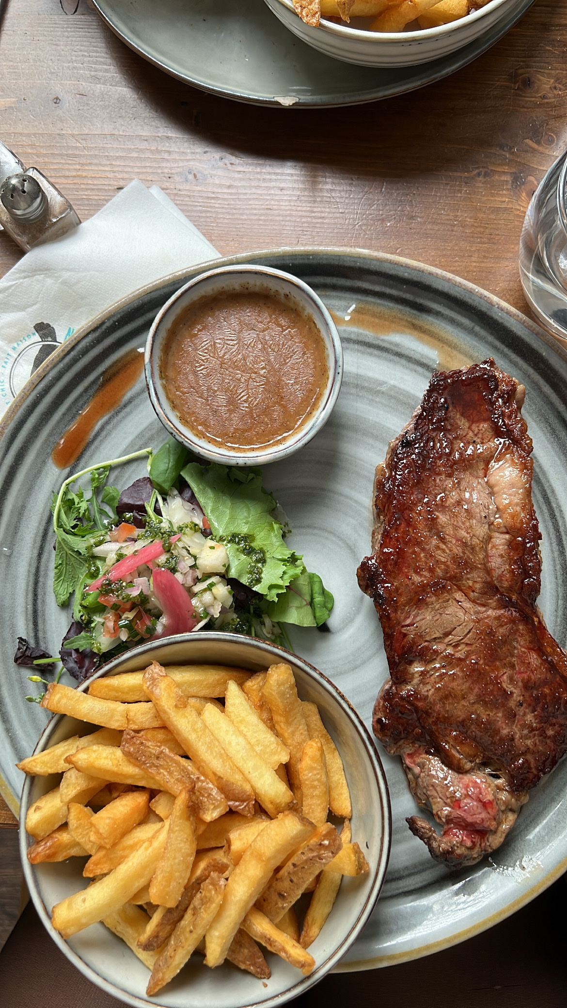 deco agréable. personnel sympathique . pot au feu presque parfait si la cuisson d’une des viandes avait duré au moins 1/2 h de plus . (entourée en vert sur ma photo)