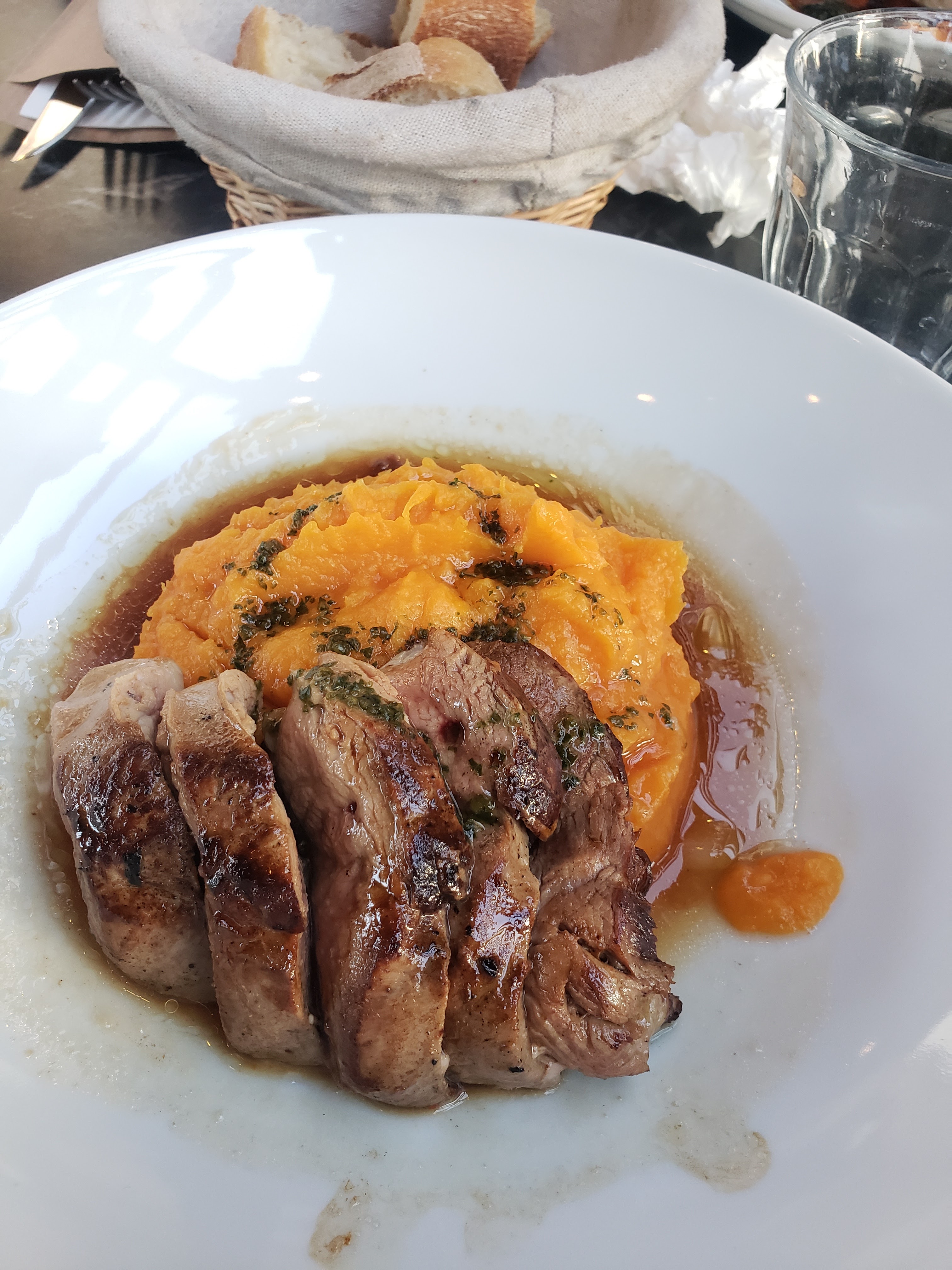 Entrée servie en même temps que l'apéritif. Viande servie sans couteau adapté, plat de pâtes servi sans sauce. Obligés de se lever récupérer les couteaux, et d'autres clients sont allés se chercher une panière de pain tout seul également. Bref, nous n'y reviendrons pas. C'est bon mais sans plus.