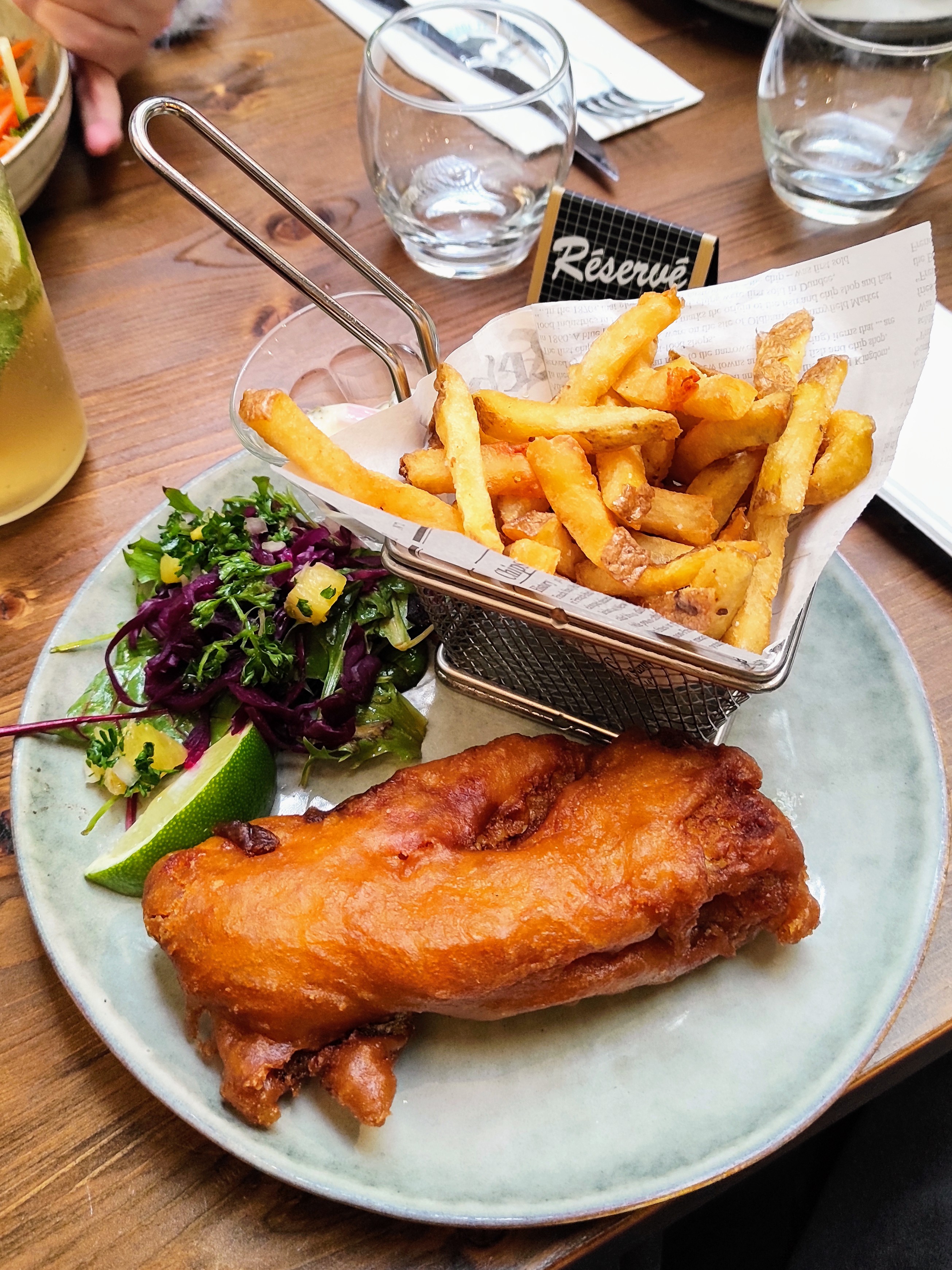 Vu que le resto est en face de château avec des autres restos concurrents, on avait peur qu’il ne soit pas bon, mais si ! Le poisson est certainement congelé mais très bien saisi et bravo pour assaisonnement. C’était parfait ! Le service correcte ambiance cosy, on valide !