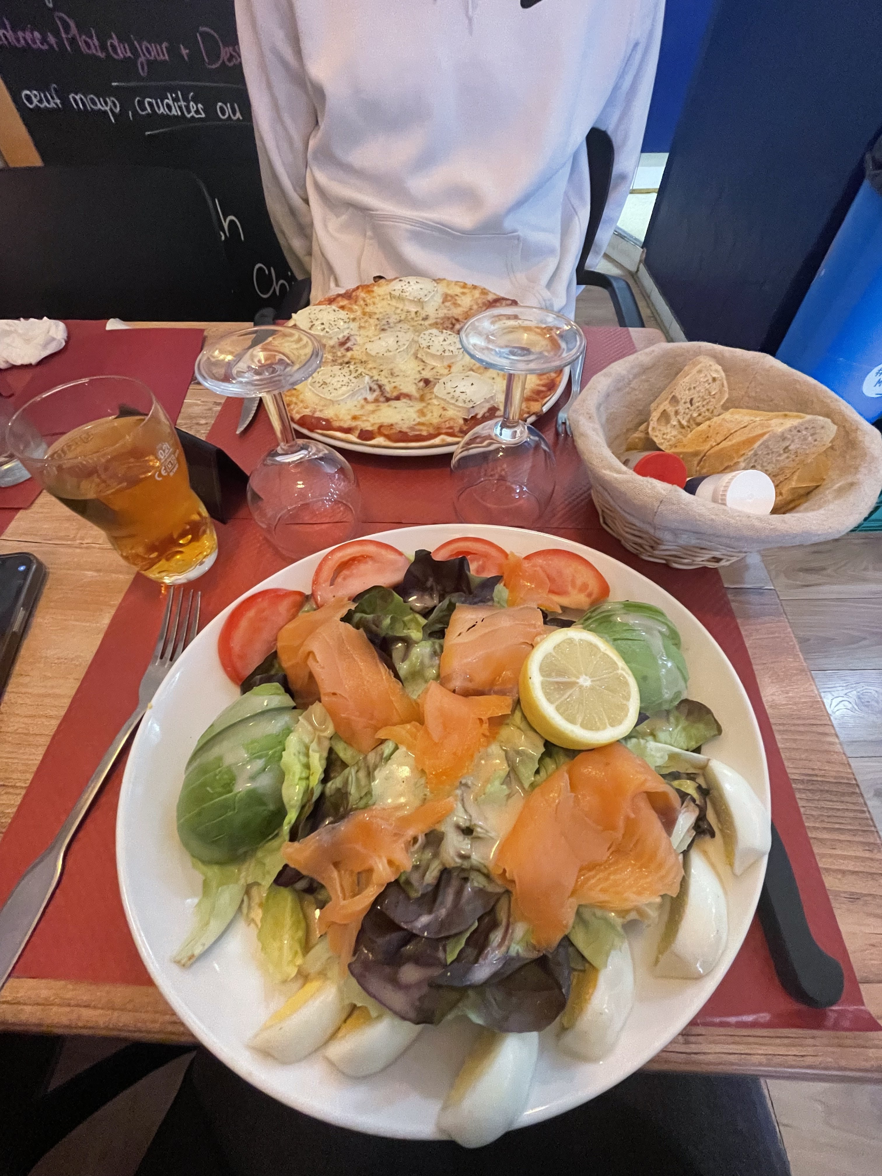 Parfait pour un repas entre amis ! Ambiance chaleureuse et conviviale, les deux serveurs sont charmants et respectueux, et ça se ressent dans les plats : les salades sont généreuses et les plats sont copieux : on y revient sans hésiter !