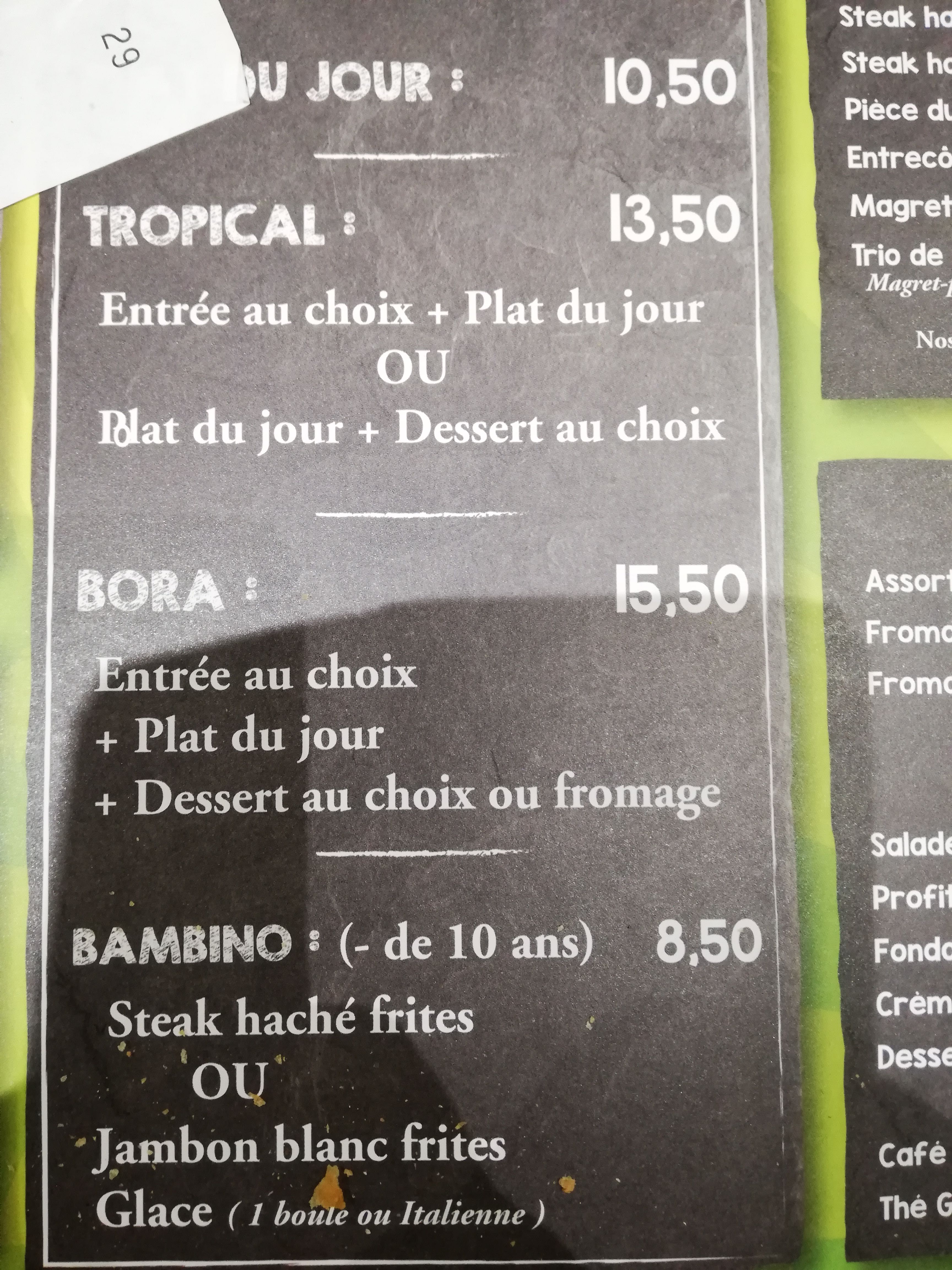 Bon repas, bon rapport qualité prix, service rapide quand on est de passage on mange très souvent au tropical. Je recommande