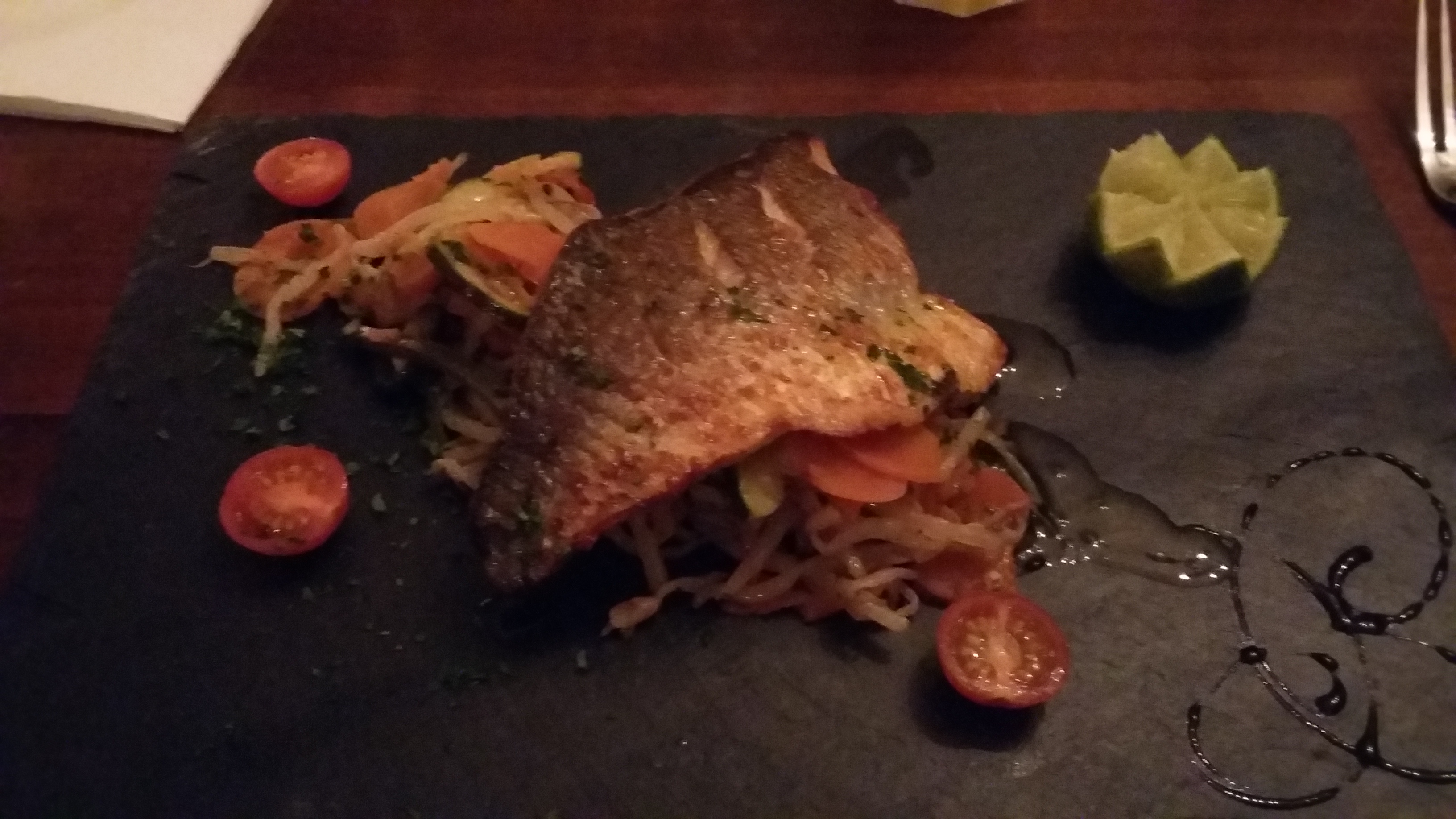 Bonjour service trop long. Le saumon était sec pas de sauce?? Rien à voir avec il ya quelques années. J'ai été malade hier soir quelques choses qui n'a pas passé. Et 2 personnes de notre table idem malade cette nuit. Voir aussi vos toilettes, l'hygiène pas terrible. Hier vous aviez la poubelle des toilettes qui était pleine. Je pense que ça date. Nous aimons bien manger mais faudrait revoir chez vous l'hygiène. Pas prêt de revenir pour le moment. A vous de faire le nécessaire pour améliorer votre Nom. Cordialement.
