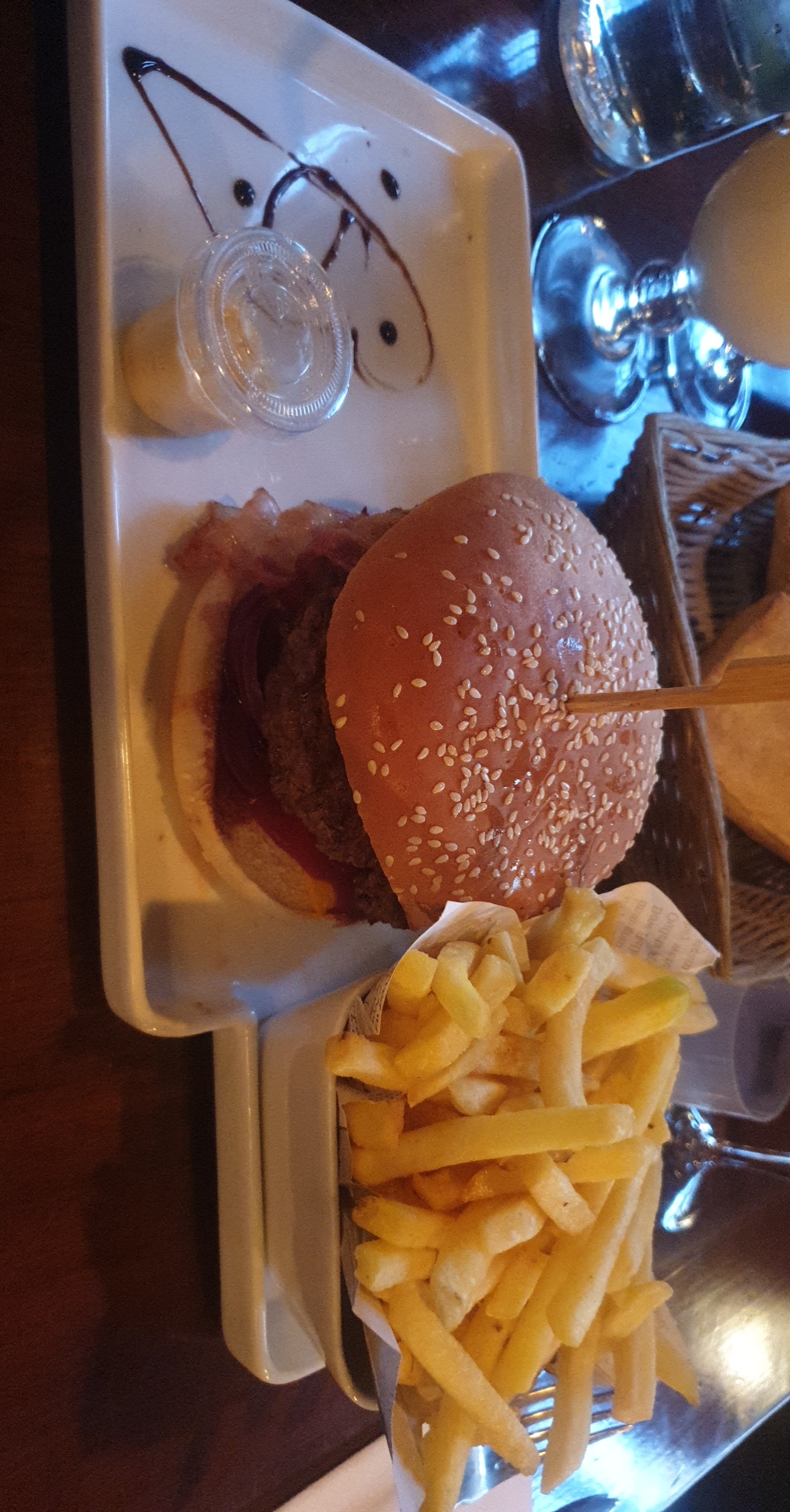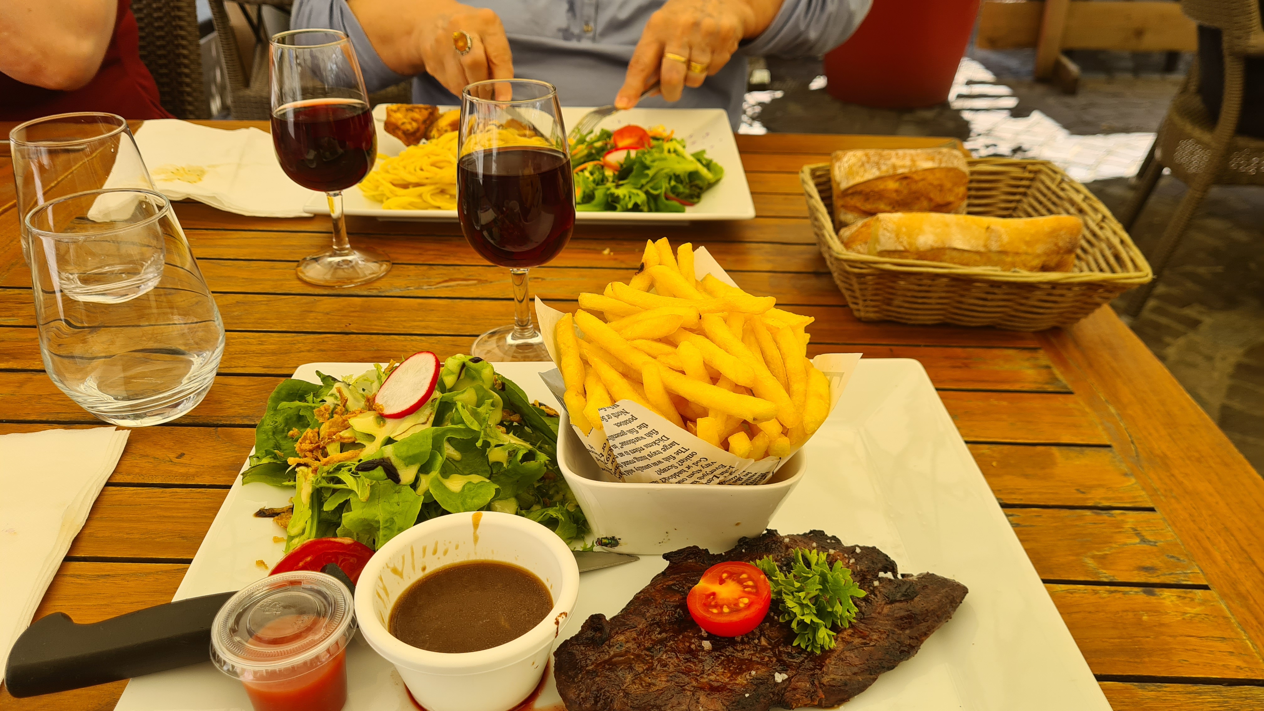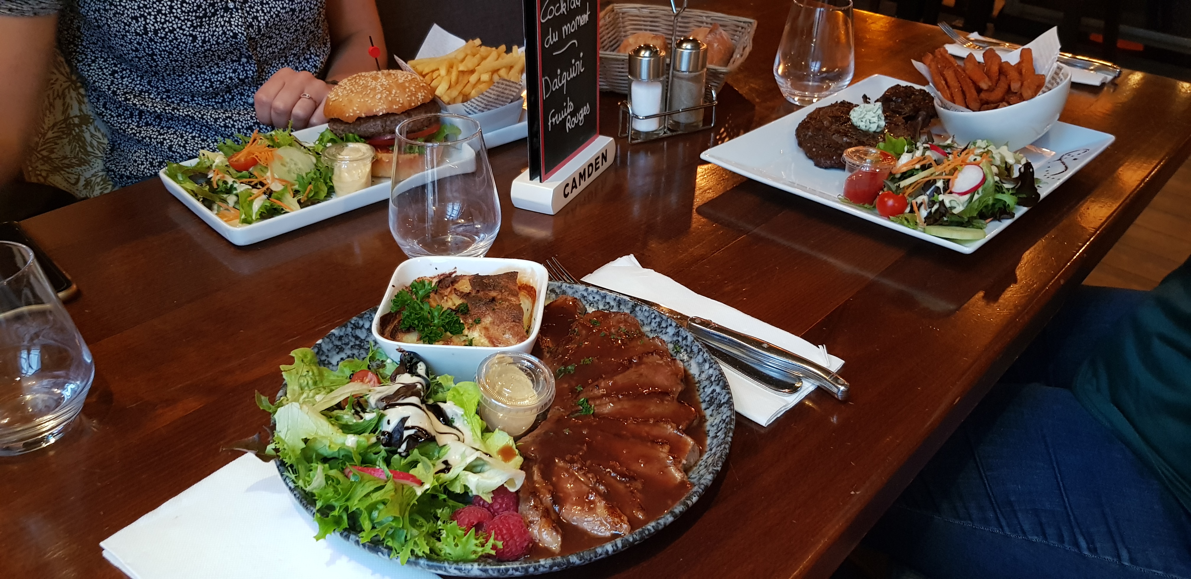 Déçus les plats sont servis sans apporter vin eau et pain, il a fallu aller réclamer au bar, la cuisine est assez bonne mais les frites servies semblent être le fond du paquet tant elles étaient petites, la déco salle est agréable mais on mange directement sur la table sans nappe ou set papier, on ne reviendra plus