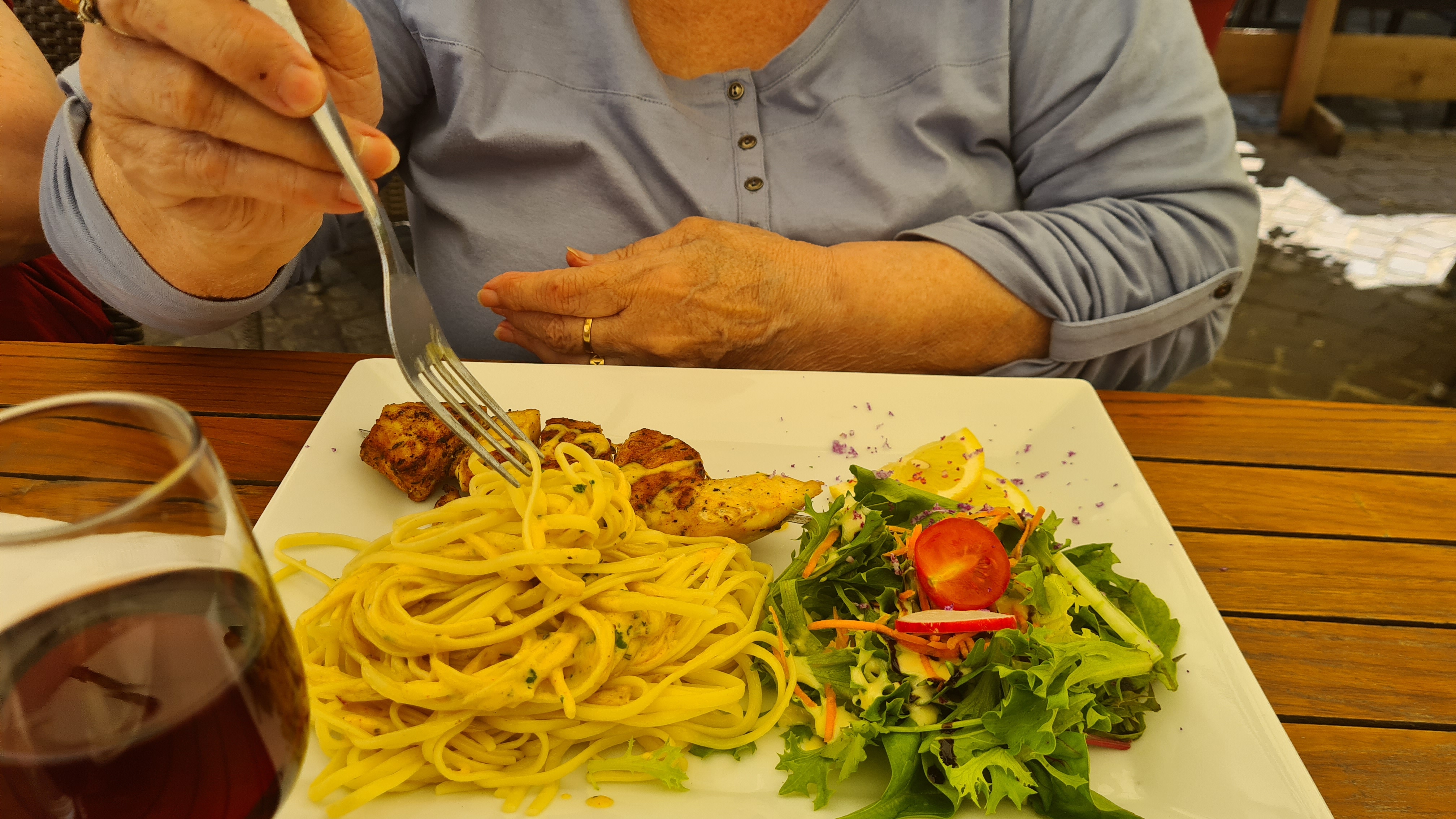 Serveuse sympathique, cadre frais (pas loin de la fontaine, en terrasse) et romantique (bon... pour profiter de ce dernier point, allez-y sans les potes et avec votre amour ;)) Et... C'était simple et bon.