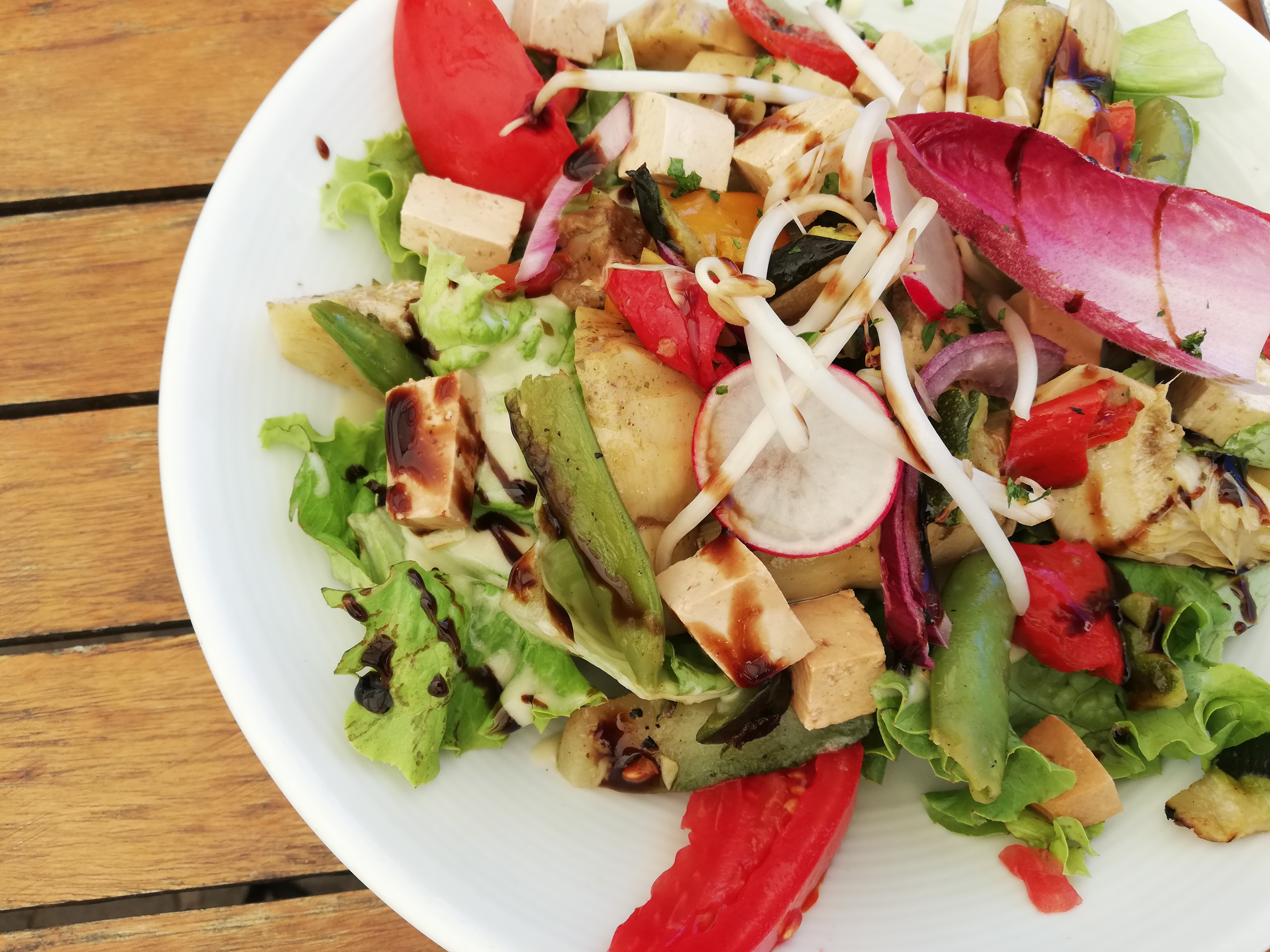 Emplacement et terrasse très agréable. Mais temps d'attente très long pour se faire servir. J'ai pris la salade dite Thaï. Simplement à éviter. Beaucoup de salade verte et rien à voir avec la Thaïlande. Le tout trempais dans de la sauce sucrée et indigeste. Mauvaise expérience. L’endroit mériterais de meilleurs cuisiniers.