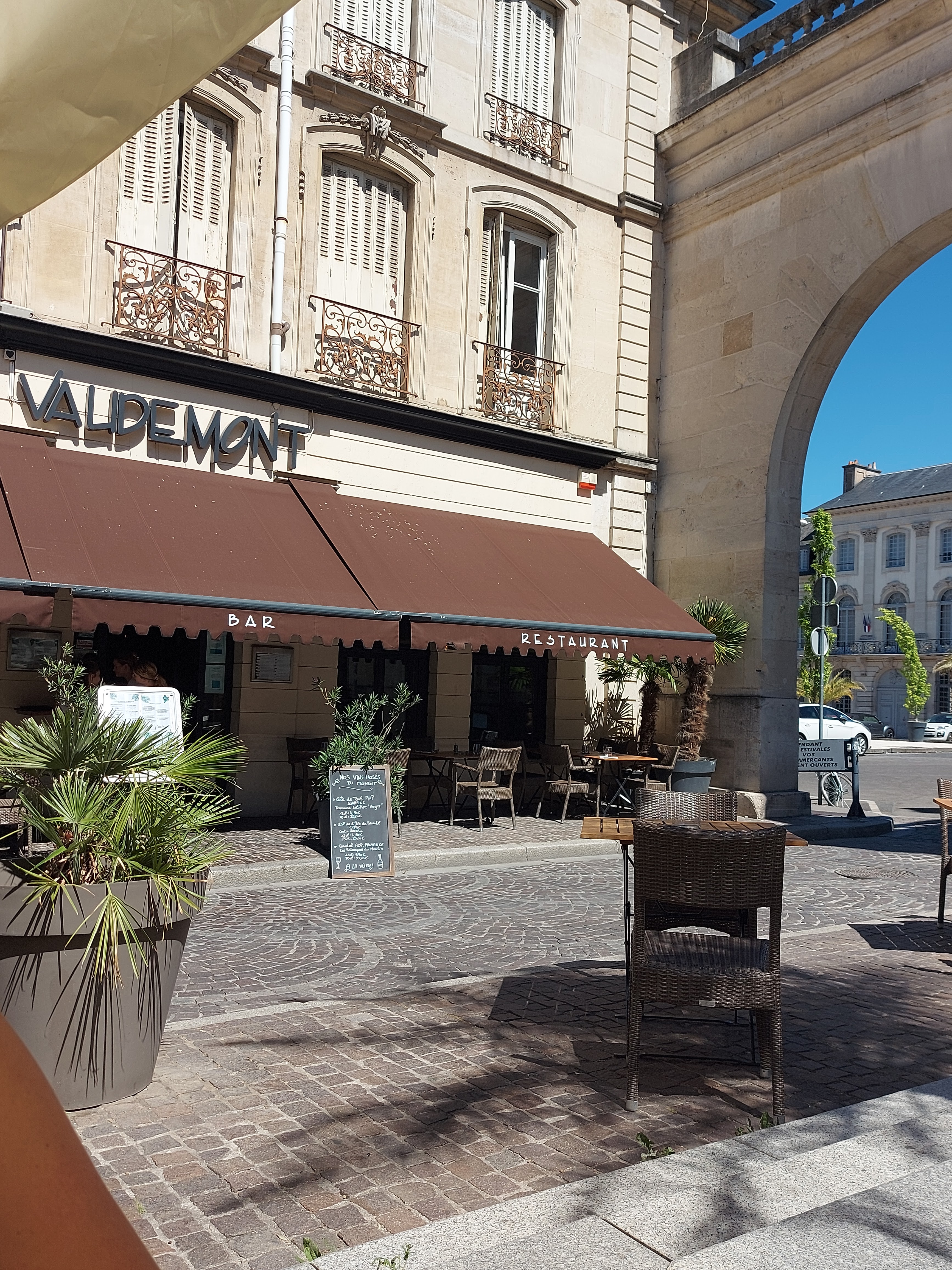 Bien situé près de la fontaine de la grande place Stanislas le personnel de service très sympa. Nous étions dans la rue où les restaurants sont cortèges il était 14 h aucun n'a voulu nous servir le seul a été le Vaudemont. Je recommande le restaurant.