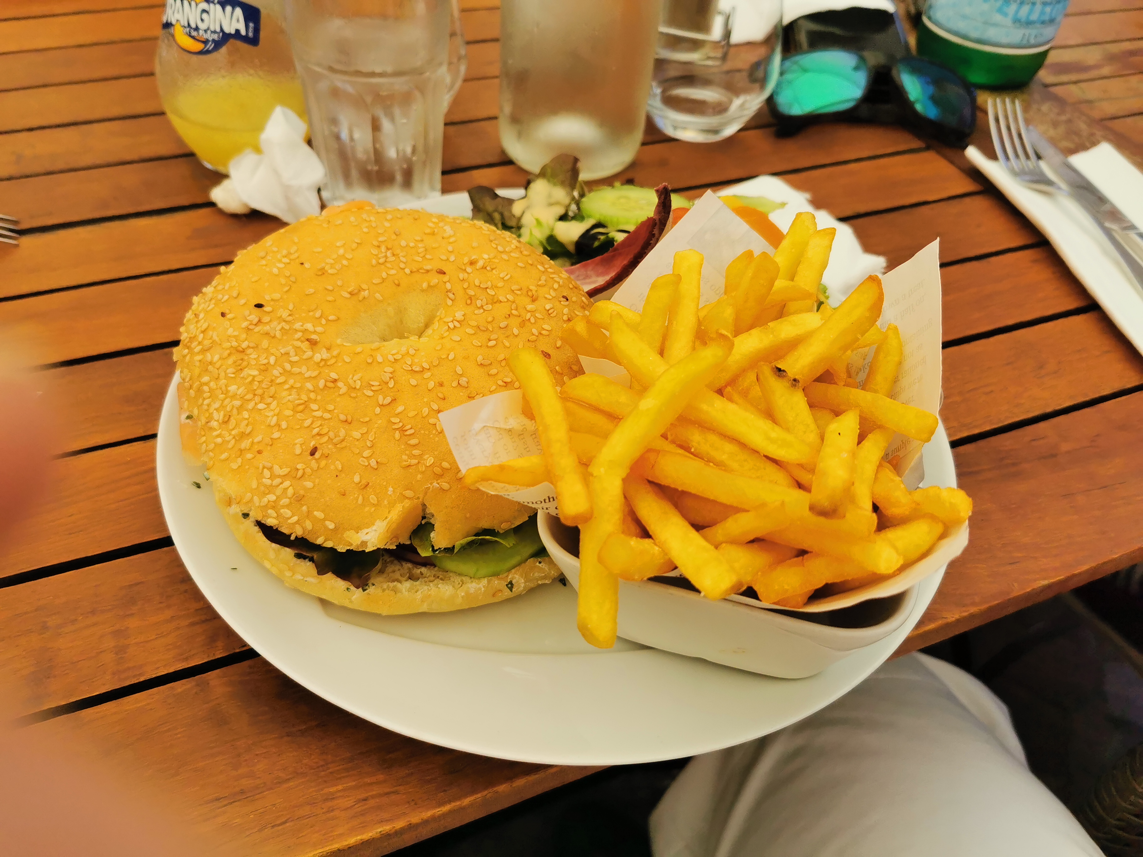 La nourriture n'était ni bonne ni mauvaise, pas vraiment une expérience inoubliable. Le service quant à lui, honteux, des serveurs à deux doigts de se foutre de notre gueule quand on leur demandait quelque chose, obligé de prendre nos assiettes nous mêmes de la terrasse vers l'intérieur quand il s'est mis à pleuvoir, ils n'en avaient rien à foutre qu'on mange sous la pluie. Bref, à éviter