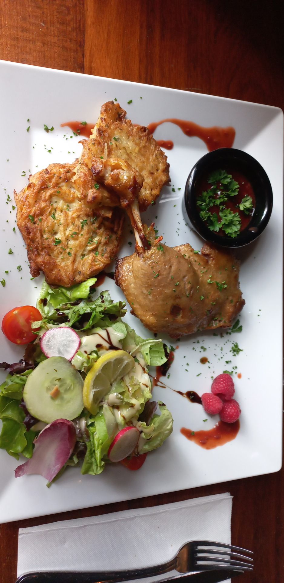 Le service est impeccable et le cadre est fort sympatique. En revanche le risotto (ou plutôt riz à la crème) manque de saveur (idem pour les galettes de pomme de terre) et l'assiette est plutôt petite... Pour un plat à 20€ on espere avoir quelque chose d'autre. En résumé c'est cher pour ce que c'est.