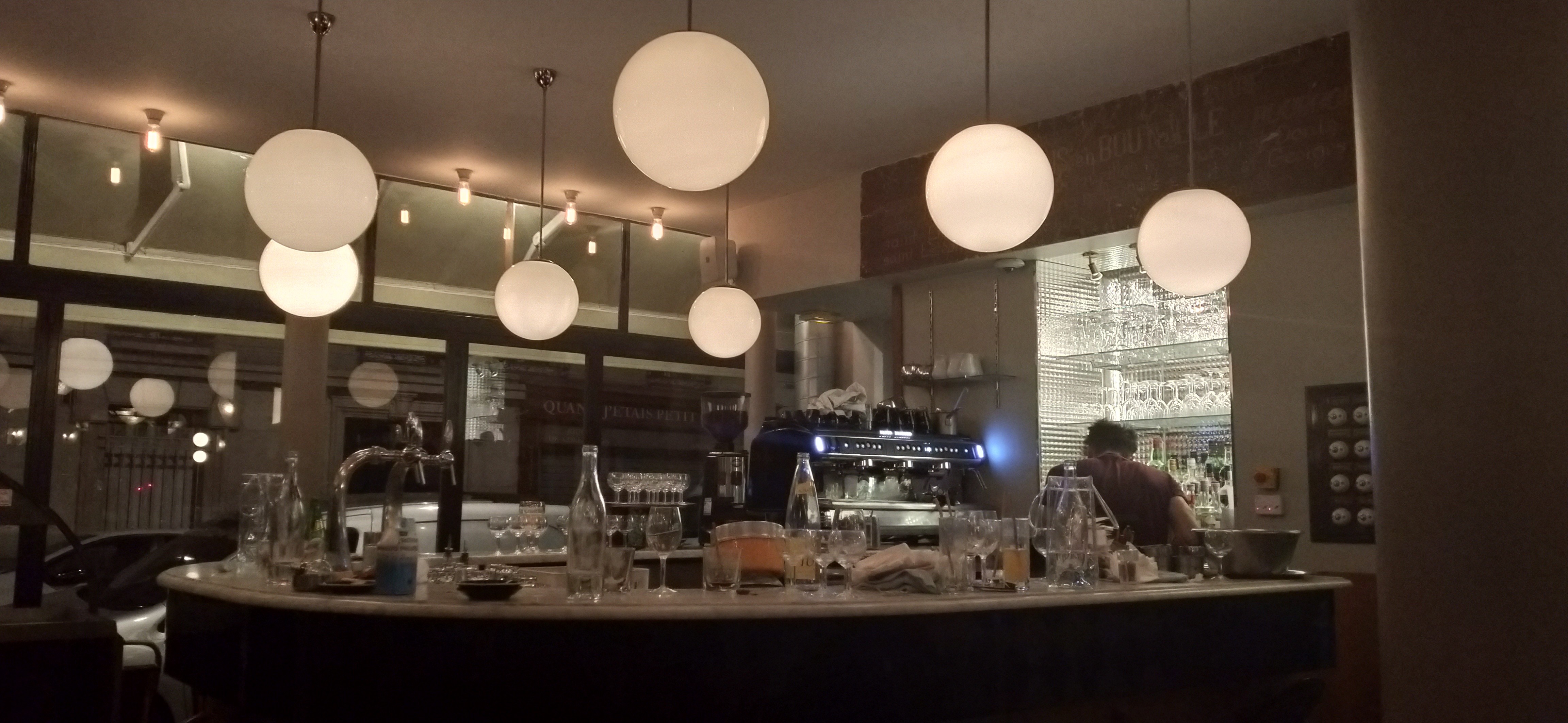 Joli restaurant ambiance et décoration bistro/ industrielle, service absolument adorable et avec un chouette sens de l’humour, des habitués d’un âge certain avec des serveurs et serveuses très jeunes ce qui est suffisamment rare pour être mentionné, un petit courant d’air à l’intérieur très appréciable en période de canicule. Bref, très chouette. Petit bémol pourtant sur les plats qui sont un peu chers pour ce qui est servi autant en qualité qu’en quantité.