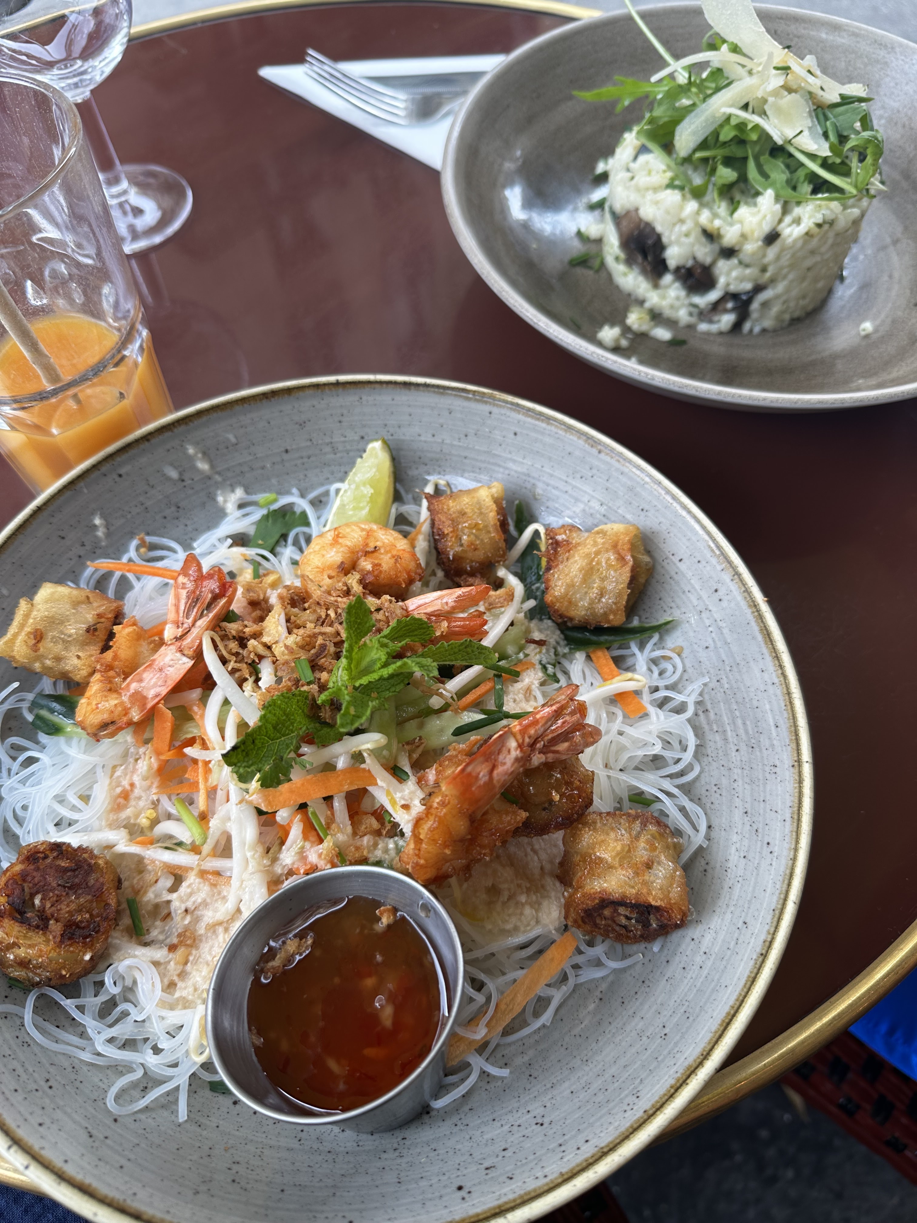 Entrée croustillant de chèvre ok, plat Linguine aux gambas très décevant. Ma copine a pris des entrées et plats différents et trouvait ça moyen aussi. Par ailleurs prix un peu cher vu la qualité. Les boissons soft (coca, eau) sont trop chères. Sympa pour le cadre et prendre une bière, mais à éviter pour manger.