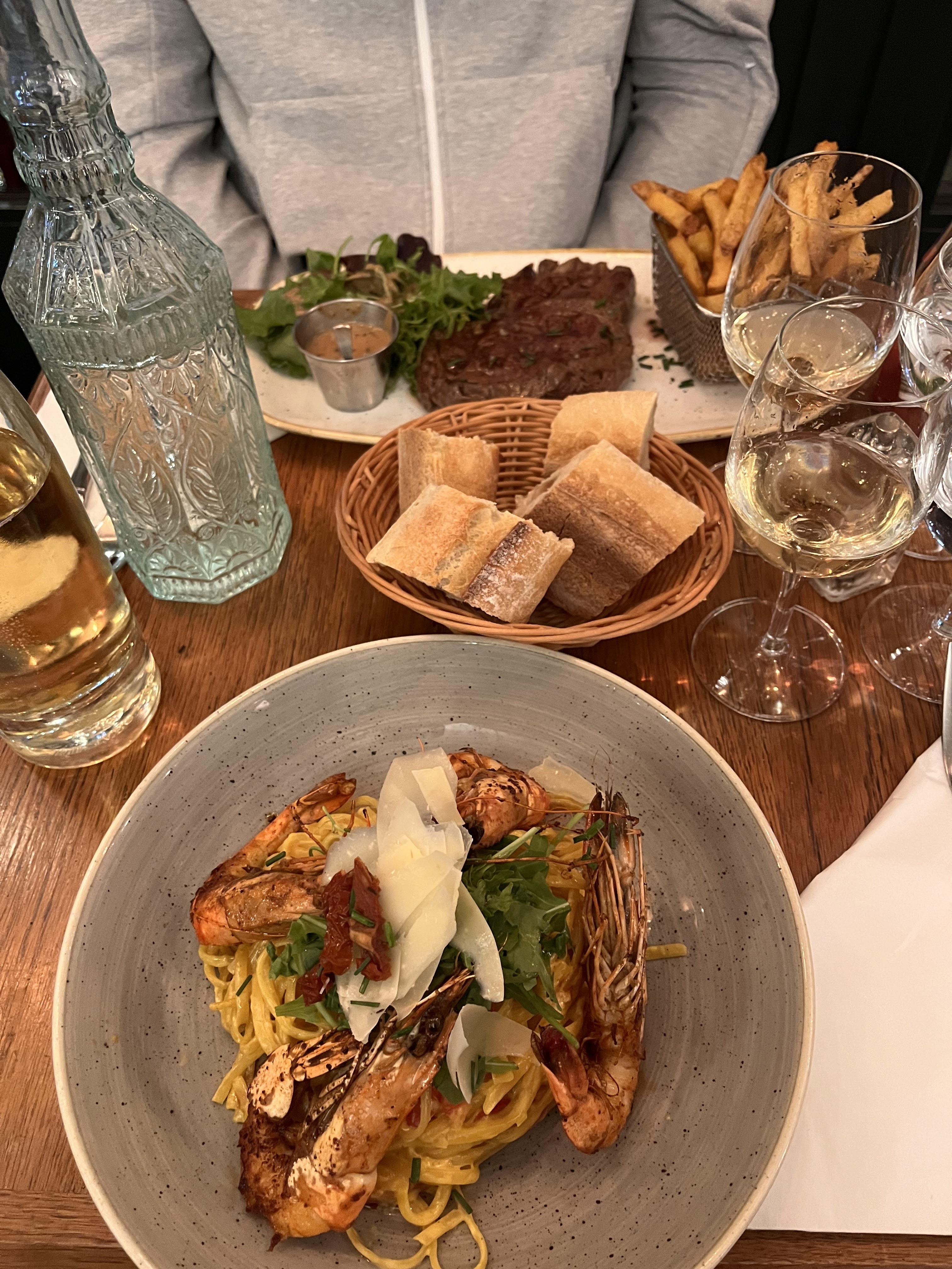 Plats très bien cuisinés, nous avons choisi l’entrecôte et les linguines aux gambas et nous avons été ravis. De bonnes portions, un service rapide et agréable! Je recommande.