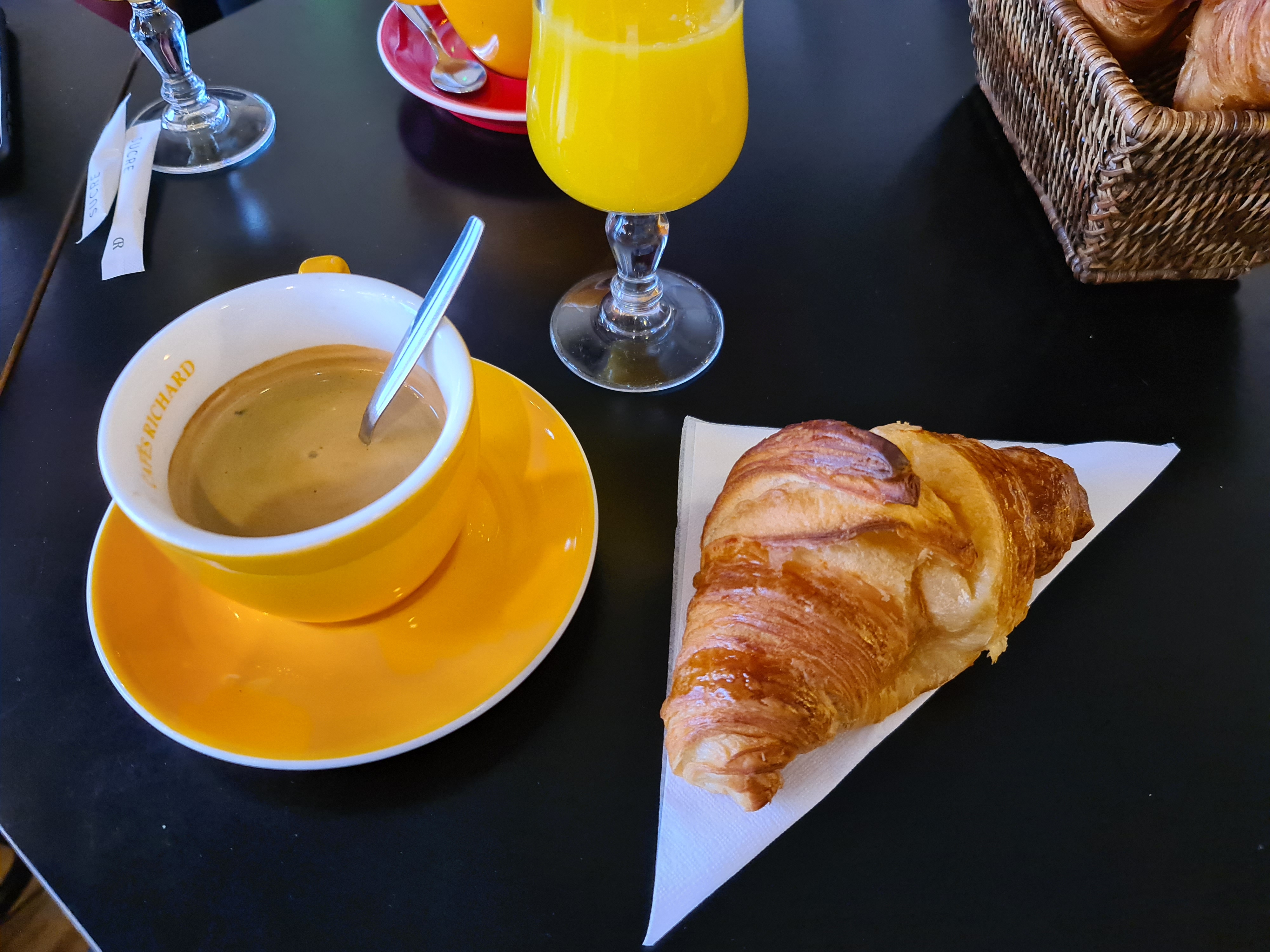 En mai, j'étais à Paris avec ma fille pendant quelques jours. Nous avons séjourné dans un hôtel juste en bas de la rue et pris le petit déjeuner au Café Versailles tous les matins. Les croissants sont excellents. Le personnel et le propriétaire sont très sympathiques et arrangeants. Vous ressentez la passion pour votre travail. Nous reviendrons certainement ici lors de notre prochaine visite à Paris.