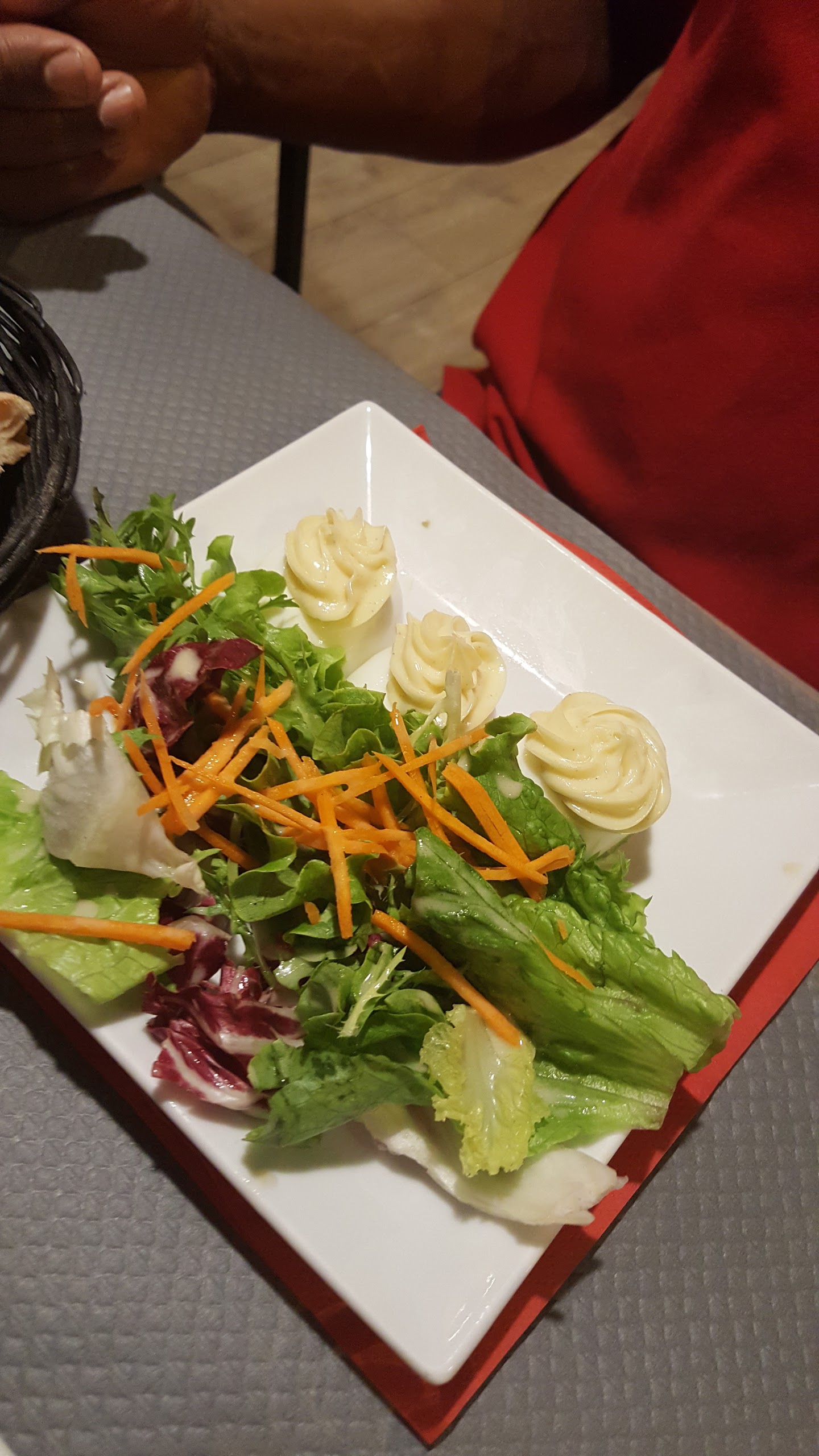 Jamais, je n’ai eu une expérience pareille ! Nous avions réservé pour 11 personnes, le patron a refusé de nous asseoir (alors que la table était prête, devant nous) avant que nous soyons les 10 au complet et nous a parqué sur la terrasse! Très agressif, nous invectivant devant les autres clients! Tout ça pour une sombre histoire de réservation qu’il avait bien eu, mais à 20h, et pas 20h30 … alors qu’on avait bien réservé pour 20h30. Bref un accueil horrible, agressif, violent qui a gâché toute l’expérience du restaurant! n’ayant pas le choix pour manger, un soir de salon, nous sommes restés ! Au final à fuir… et à soigner sans doute, le problème est davantage médical que culinaire. Sinon, restaurant classique, nourriture très correcte! Bien évidemment, nous ne reviendront pas!