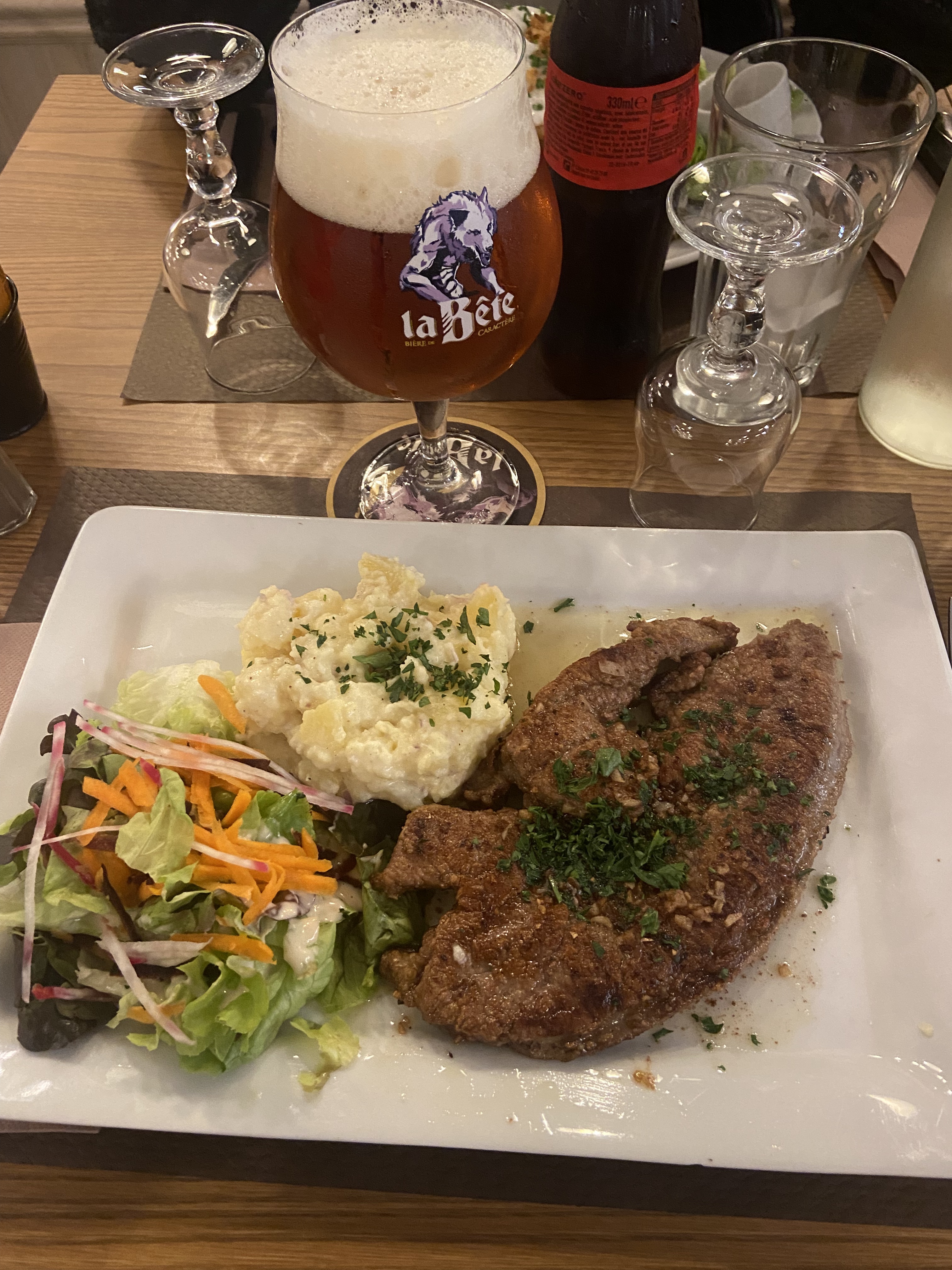 Bon restaurant avec un staff qui fait son maximum et ça donne de bons résultats. Très bons plats à prix honnêtes vu les portions généreuses. Attention aux prix sur la bière et le vin ça pique. Toilettes propres mais odeur pas super. On y reviendra avec plaisir.