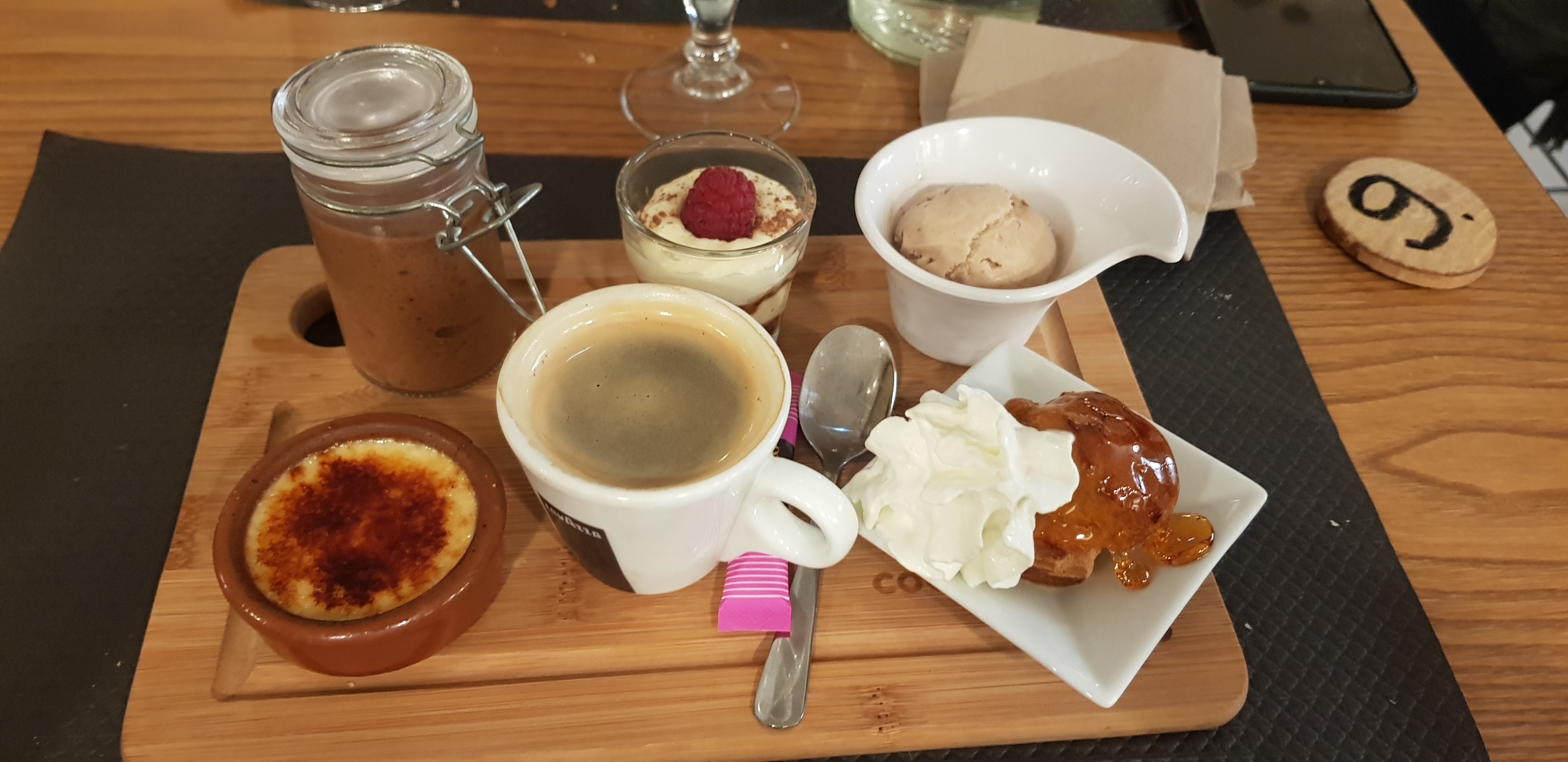 Venue ce midi sans réservation, et malgré le monde nous avons eu une table. Attente un peu longue mais ce n'est pas un fast food donc normal. Les deux plats étaient très bon et les assiettes d'à côté nous ont donné envie de revenir 😅 café gourmand parfait. À bientôt
