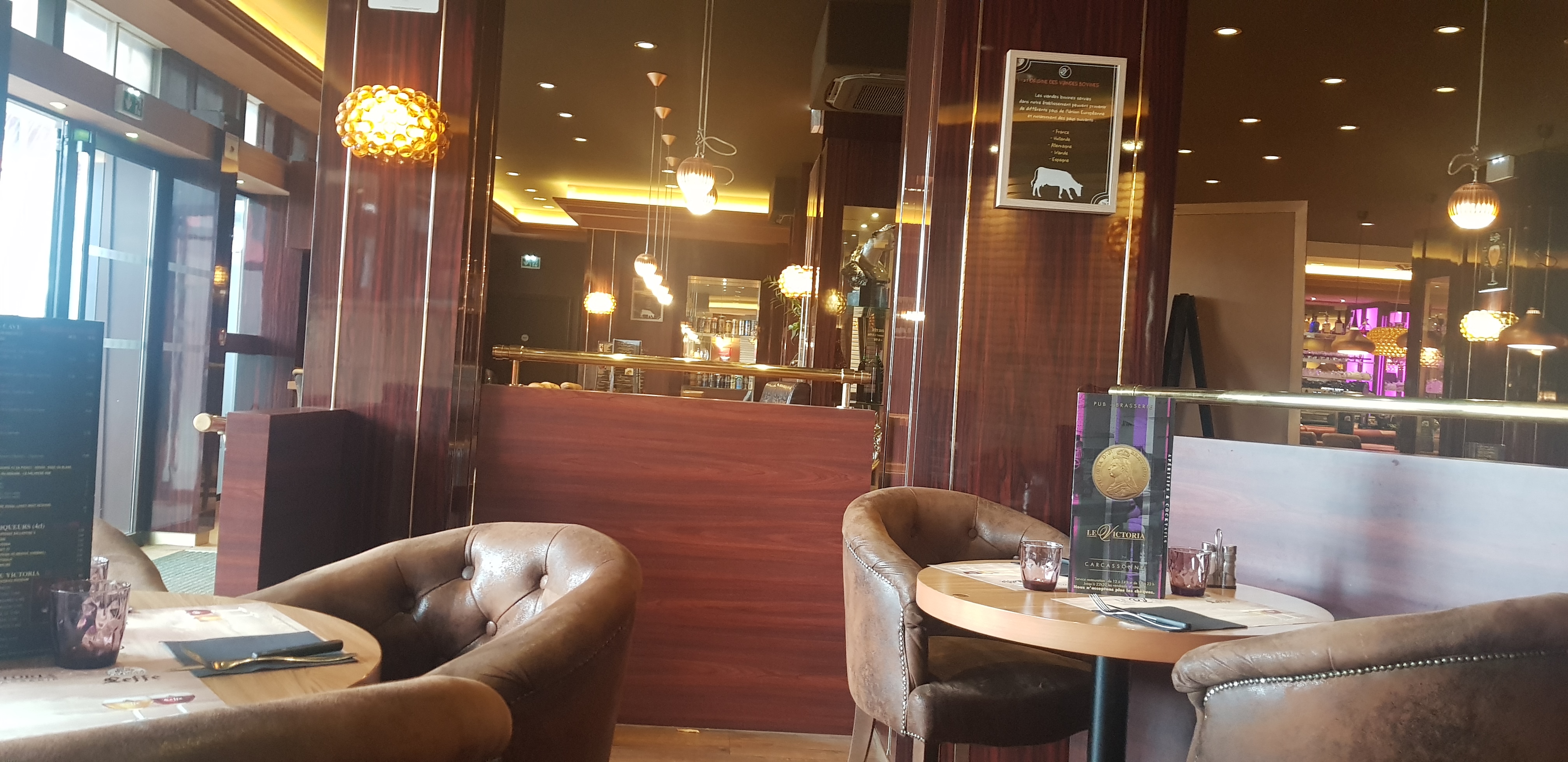 Première visite au victoria, le décor est très jolie, sobre ambiance sympa. Bonne accueil, le personnel est souriant, avenant, polie, au petit soin. Nous avons pris deux menus victoria. Plusieurs choix proposés et des bonnes proportions.Entrees : Moules gratinées avec une petite salade pour moi, foie gras toast pour monsieur. Plats: saumon sauce au beurre et frites pour moi, faux filets,frites,salade pour monsieur. Desserts : crème brûlée pour moi et tiramisu monsieur. Tout étaient excellents, les cuissons du poisson et de la viande maîtrisé, la viande était tendre et bien assaisonner, sans problème de nerfs contrairement à d'autres. Nous avons demandé un doggi pour amener le tiramisu car plus faim. On nous a apporté une boîte tupperware trop sympa ( je m'attendais a un doggi carton ou mm un emballage alu qui m'aurait convenue). Au total 68.20 deux menus et deux cocas. Je précise le coca est une bouteille en verre et non en canette ce qui est pour moi un réel plus. Table 27 ce 1er avril au soir.