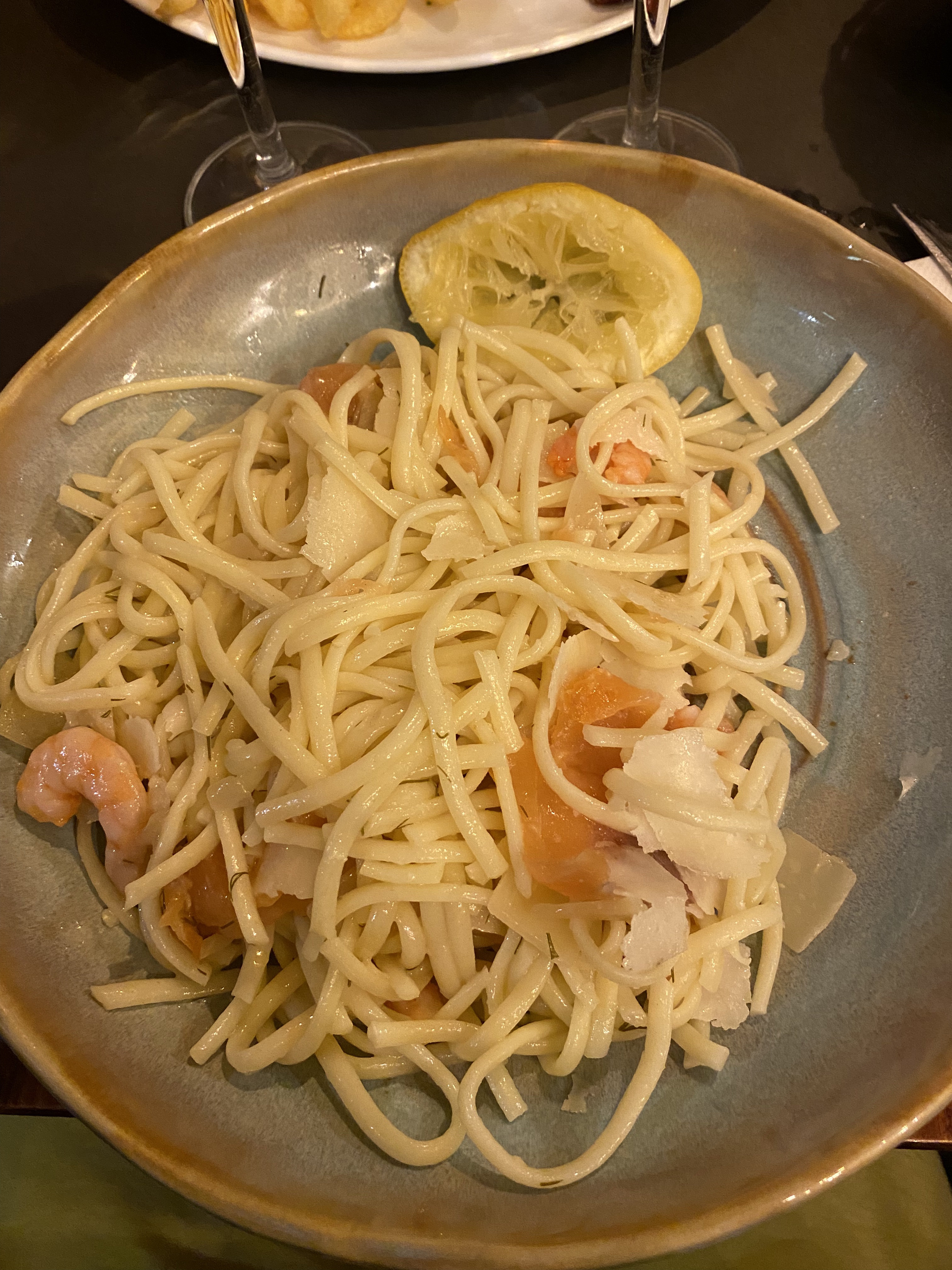 Une bonne ambiance dans le resto rien à dire la dessus! Par contre j’ai mangé les pires pâtes de ma vie: des pâtes au saumon froides, sans aucun assaisonnement (pas de crème, pas de fromage) juste des pâtes au beurre avec des miettes de saumon fumé :/ Par contre les viandes étaient bonnes !