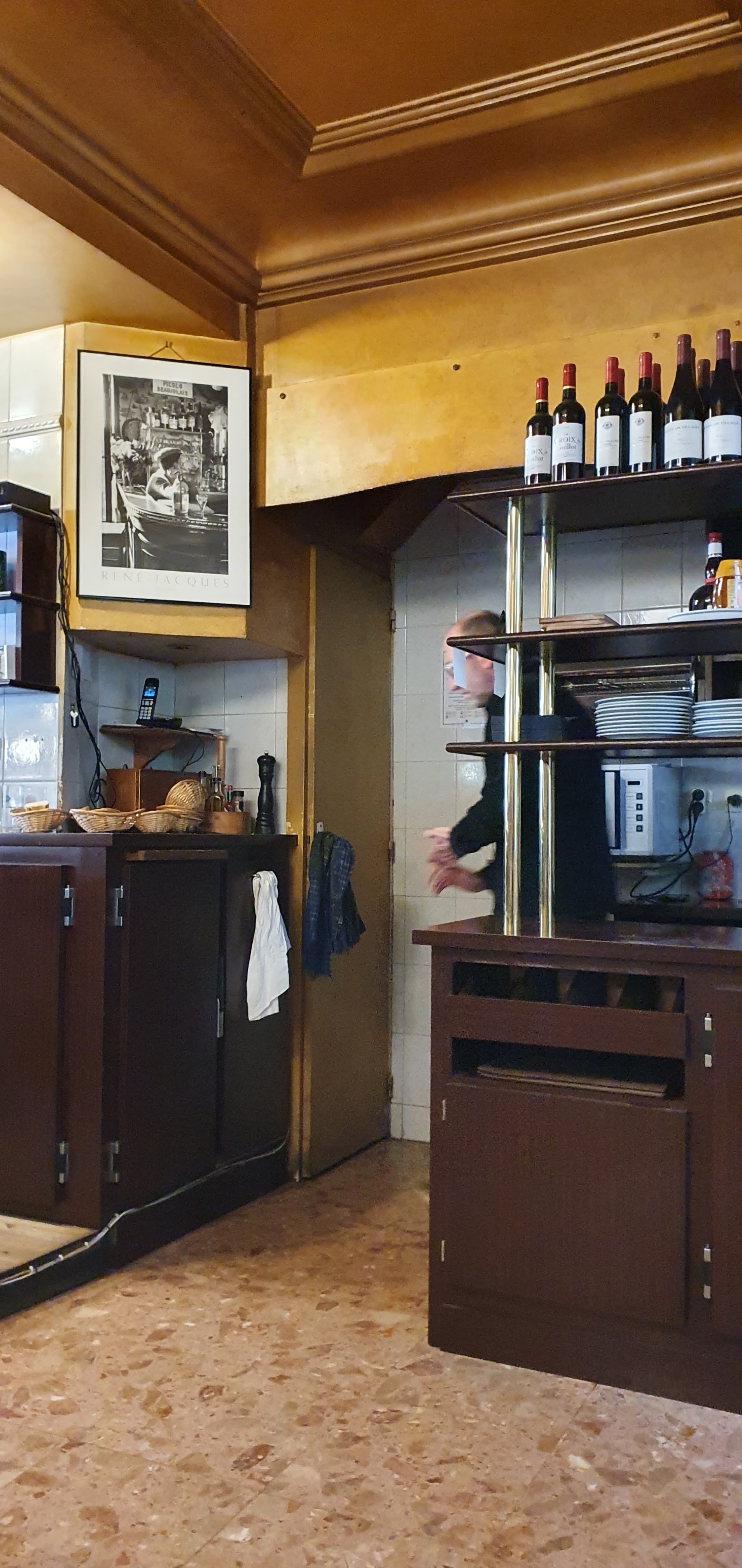 Ambiance rétro . Frites maison excellentes . Un endroit qui devient rare . Possibilité d’être dans une salle un peu à part si vous faites un repas entre collègues ou familial … service rapide . Je recommande vivement .
