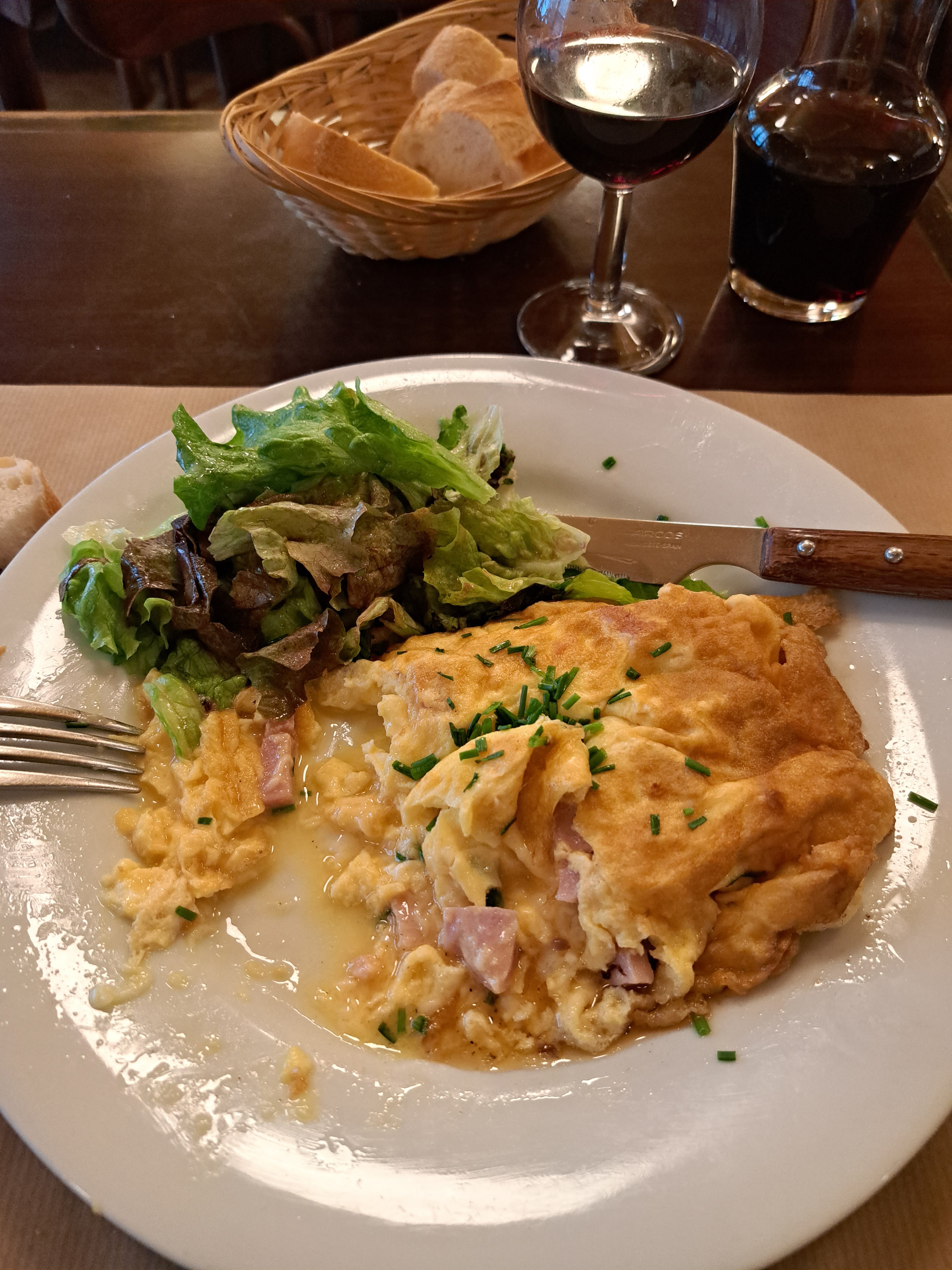 Mauvaise mauvaise nourriture ! Je ne sais pas du tout comment cet endroit a réussi à obtenir 4,4 sur Google. Je donne 2 étoiles seulement en raison d'un bon service. J'ai commandé des saucisses spéciales, j'ai cherché ce que c'était sur Google à l'avance, pour ne pas être surpris. Quand il est arrivé, j'avais hâte de le goûter. Cependant, une odeur suspecte flottait dans l'air avant même de couper le saucisson. Une fois que je l’ai fait, c’est devenu encore pire. Néanmoins, je ne suis pas un lâcheur, j'ai donc pris quelques bouchées difficiles à réprimer. Incroyablement rance. Comme si les crottes étaient encore dans la saucisse. Je n'ai pas pu le finir alors j'ai mangé les frites et quelques feuilles de laitue non assaisonnées dans l'assiette. Mais bon, c'est peut-être un truc français ?? J'ai donc décidé de commander quelque chose de plus simple. J'ai commandé une omelette au jambon et au fromage (en quoi cela peut-il être mauvais, n'est-ce pas ?). Ce qui est arrivé était un désordre aqueux et huileux, frit jusqu'à ce qu'il soit croustillant à l'extérieur et complètement cru à l'intérieur. Pas de sel/poivre/condiments. Si c’est le cas, alors très très peu. J'en ai retiré quelques morceaux de jambon et j'ai mangé du pain. Et j'ai renoncé à essayer autre chose. Je ne suis pas un mangeur difficile et je suis fan de nourriture bizarre, mais c'était tout simplement immangeable. J'espère que je n'aurai pas d'intoxication alimentaire. Le vin était bon.