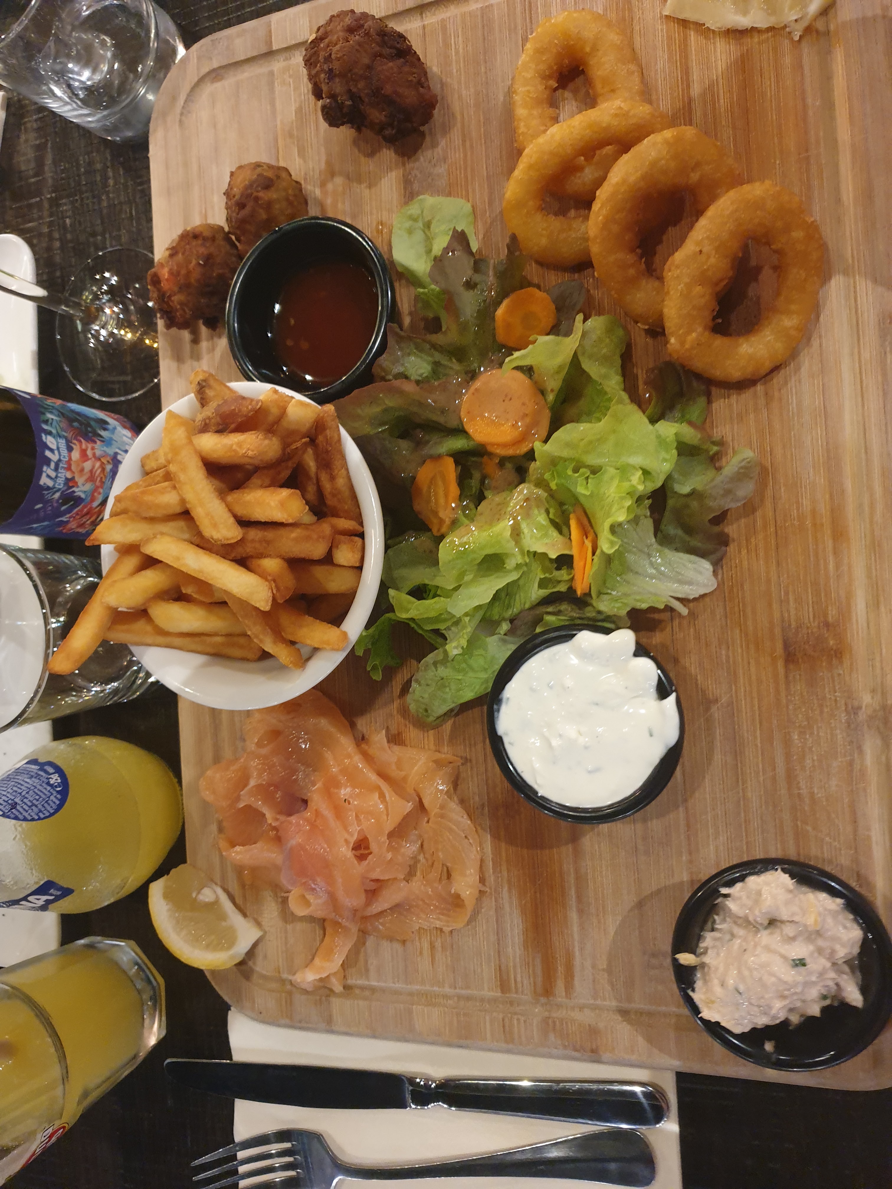 Des planches bien garnies, de jolies présentations et du personnel agréable. Par contre, les plats sont trop gras et le service trop lent. La terasse est également assez étroite et très bruyante