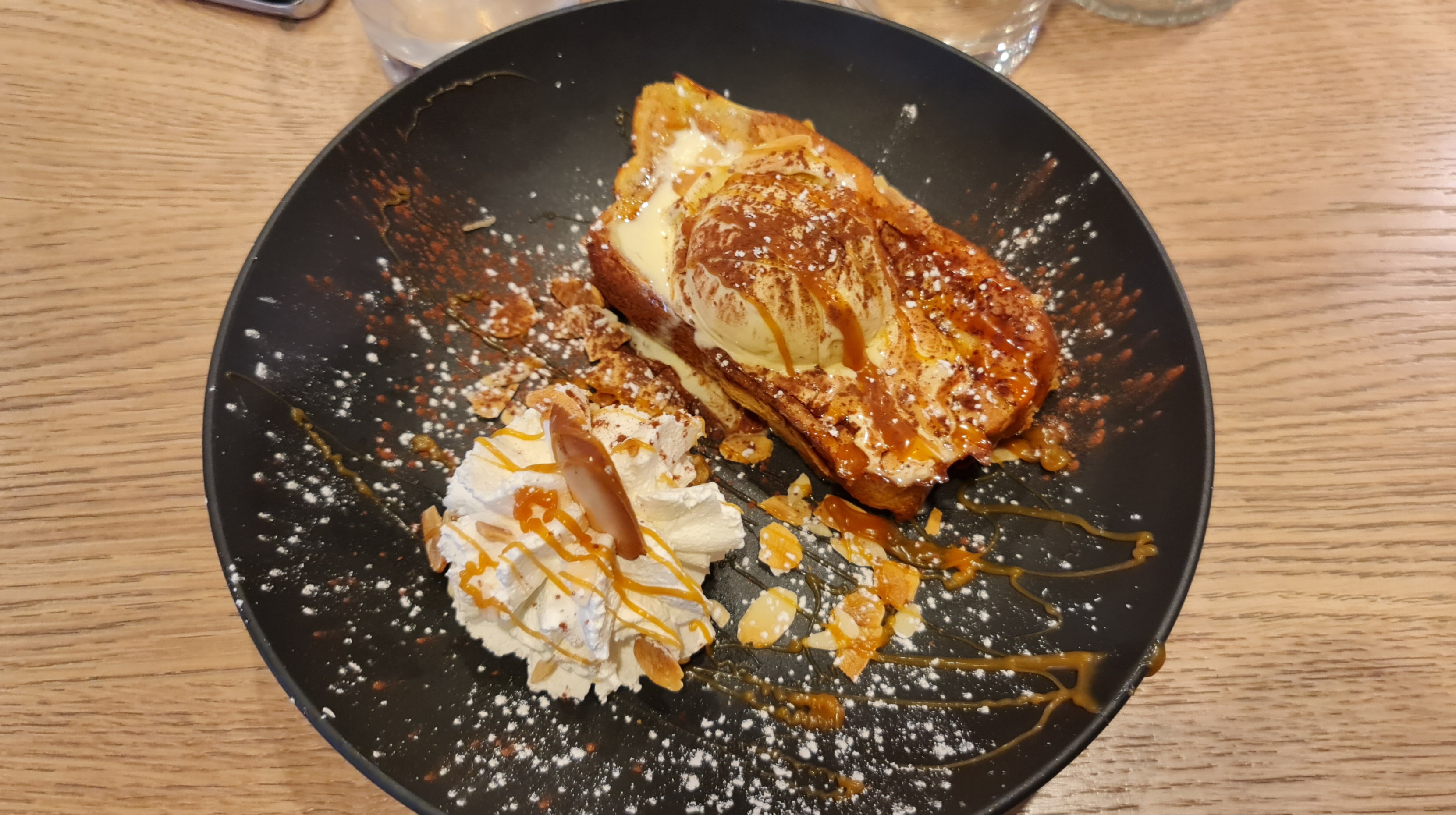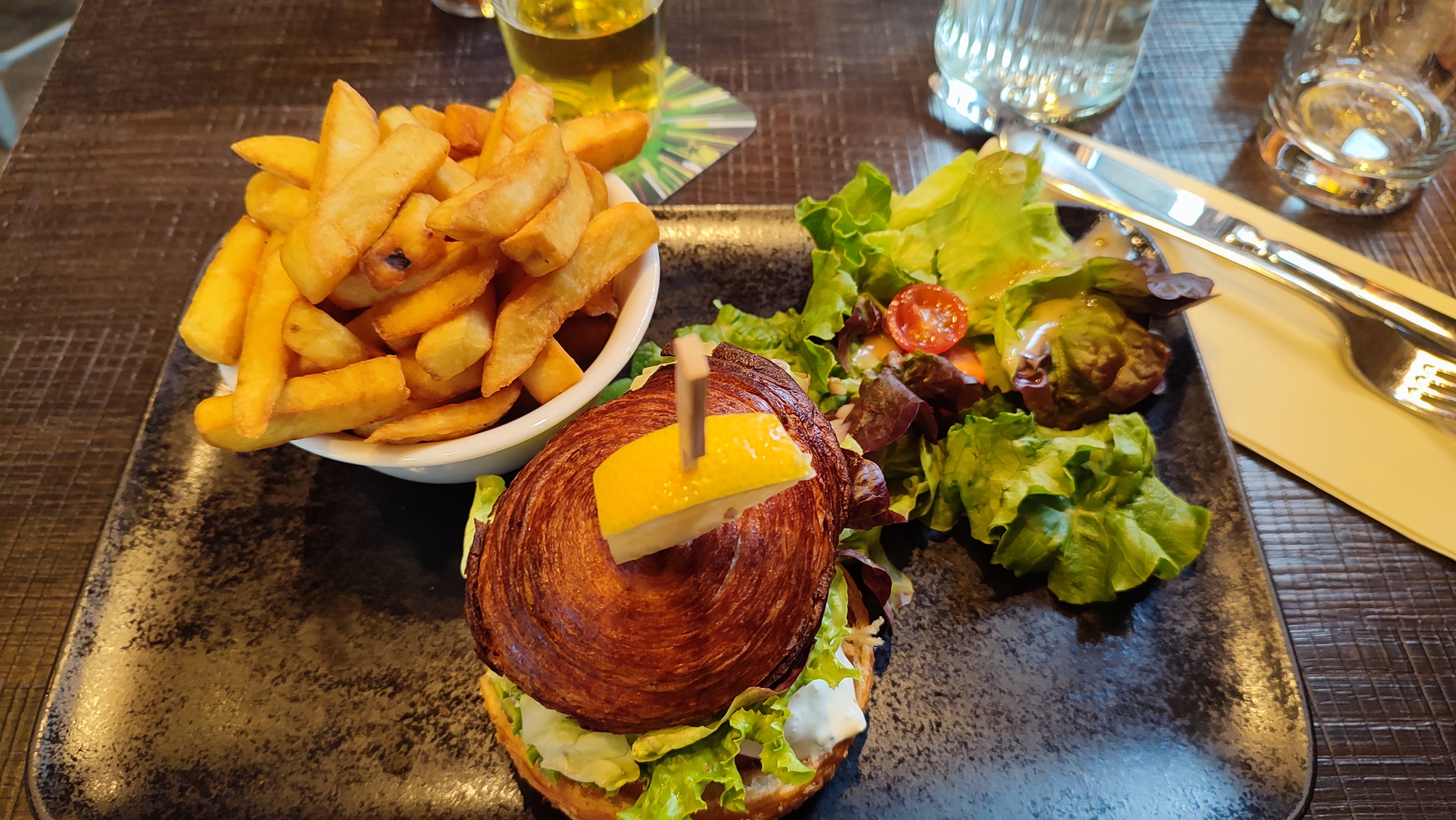 Rien a redire personnel très accueillant et agréable j'ai commandé un burger poulet : excellent de même pour les frites un peu spéciales bref une très bonne brasserie.